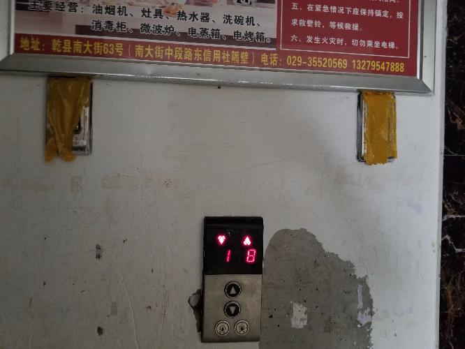乾县泰山庙街兴庆苑小区电梯突然停止运行,然后从8楼直接上到18层,安全隐患无处不在,随时可能出事,从电梯安装到现在没有任何检验报告,更别说安全了。