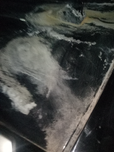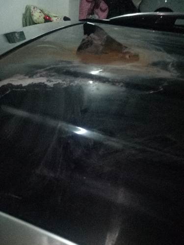 “车外表厚厚一层污垢,无法看清车外表情况。我把车开去洗车店,清理后发现车顶漆面受损严重,车引擎盖上多处划痕,”文女士表示,经4S店维修,抛光费用加单面喷漆费用下来最少要1500元,“即使喷漆,和原来的车体颜色也会有差异”。