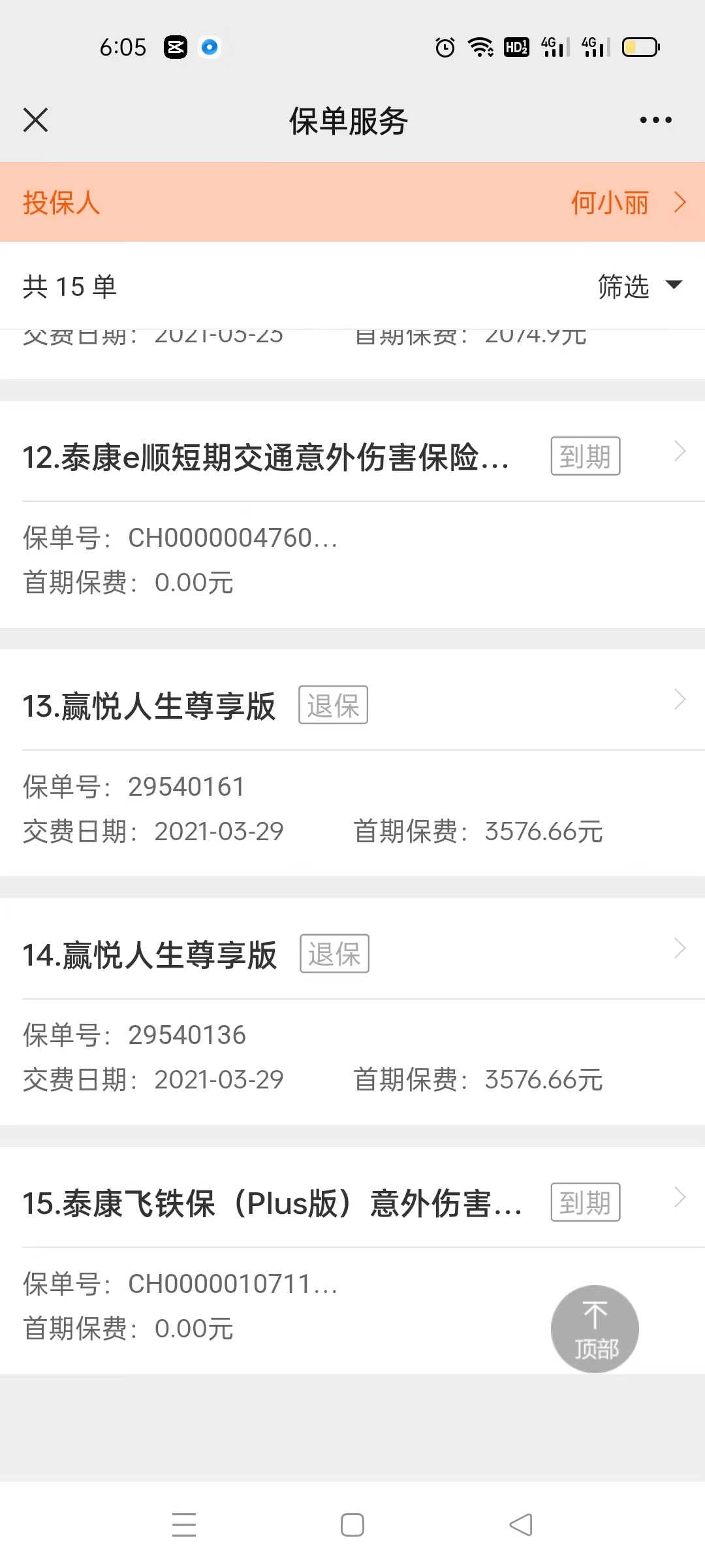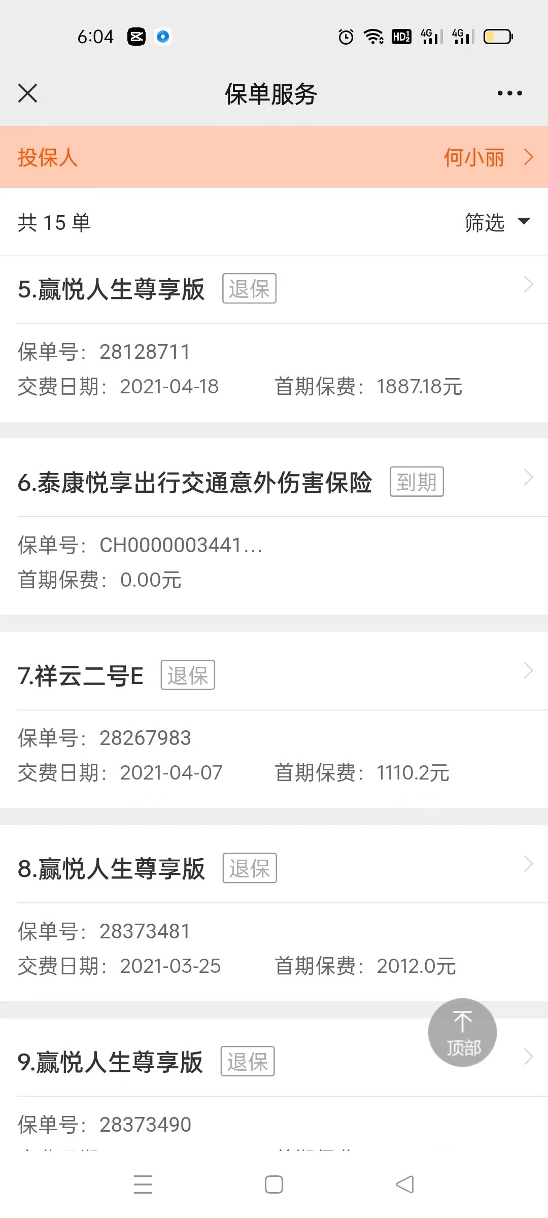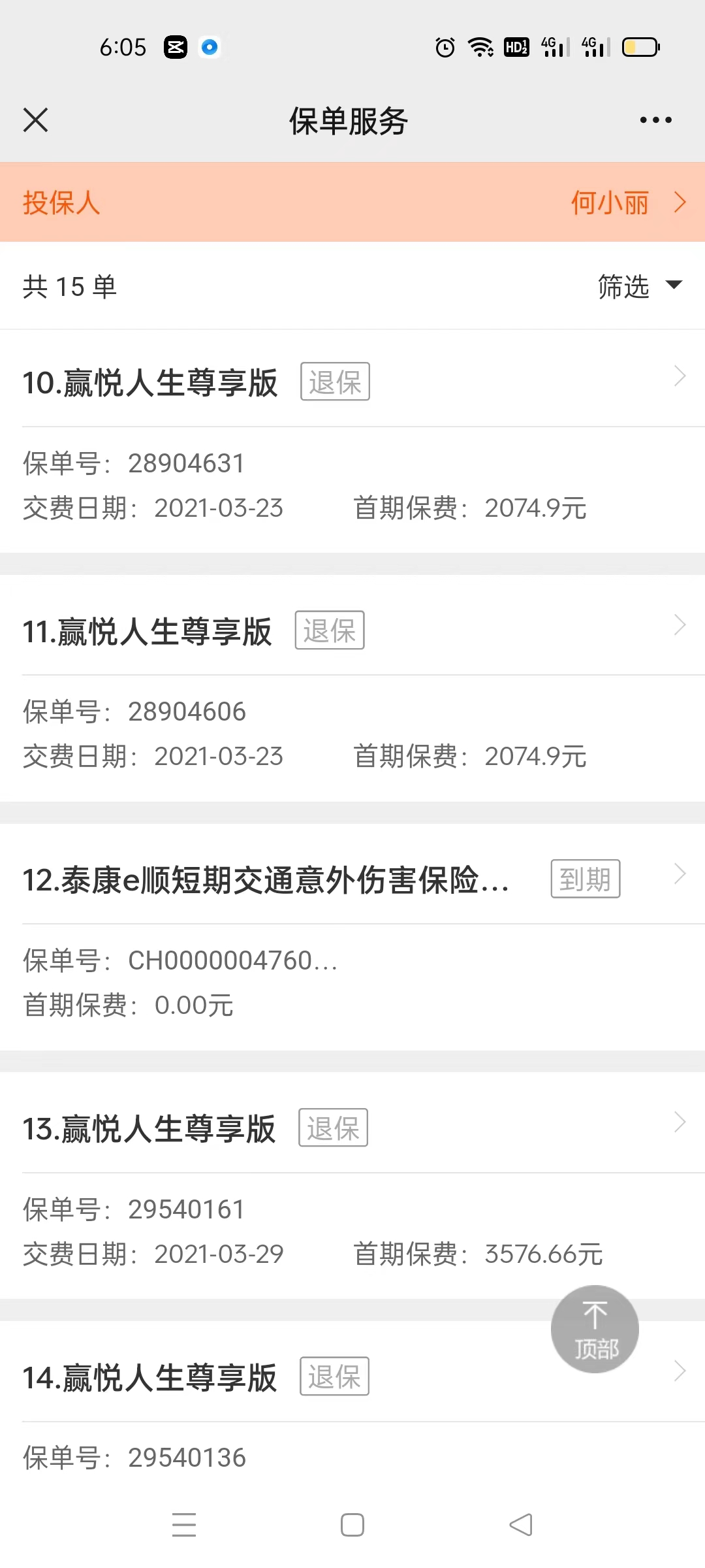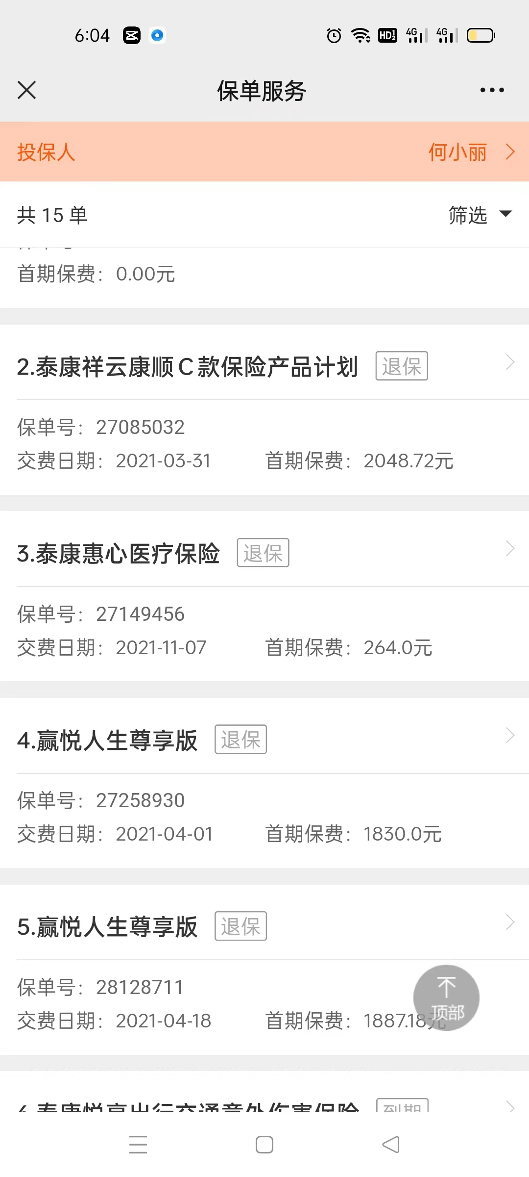 你们业务员一次又一次的电话骚扰,忽悠我买了这些保险,完了之后也没提供其他啥服务,然后就是过几天就给我打个电话过几天就给我打个电话,不是保单升级就是什么保险要停了以后没资格的,然后变着法的又给我办了几份,过了没多久又给我打电话,说是我的那个什么在他们泰康的会员等级又不够,我都说了没钱了,然后那个叫宋某某的业务员就强制性给升级办理,说啥其他客户全部都通知升级了,要是我不办理的话之前办的那些收益都会降低,然后就是各种骗我。