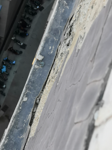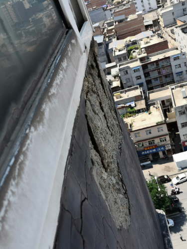 西安航天基地紫旭花园外墙墙皮脱落严重 钢筋弹出墙体屋顶漏水