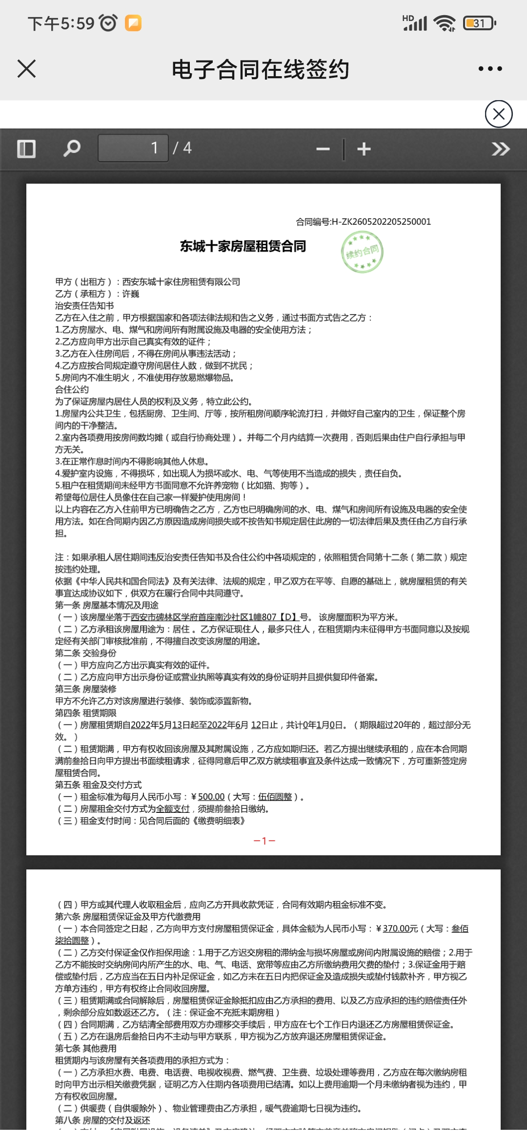 您好,本人于2022年10月12日与西安东城十家住房租赁有限公司(原荣盛置业)签订了租房合同,租期到2022年7月2号,位于碑林区学府首座南沙社区1号楼。现已退房且中介已收房,并承诺退还押金,现在中介一直不回消息不接电话,不退换押金及物业管理费共计470元。
