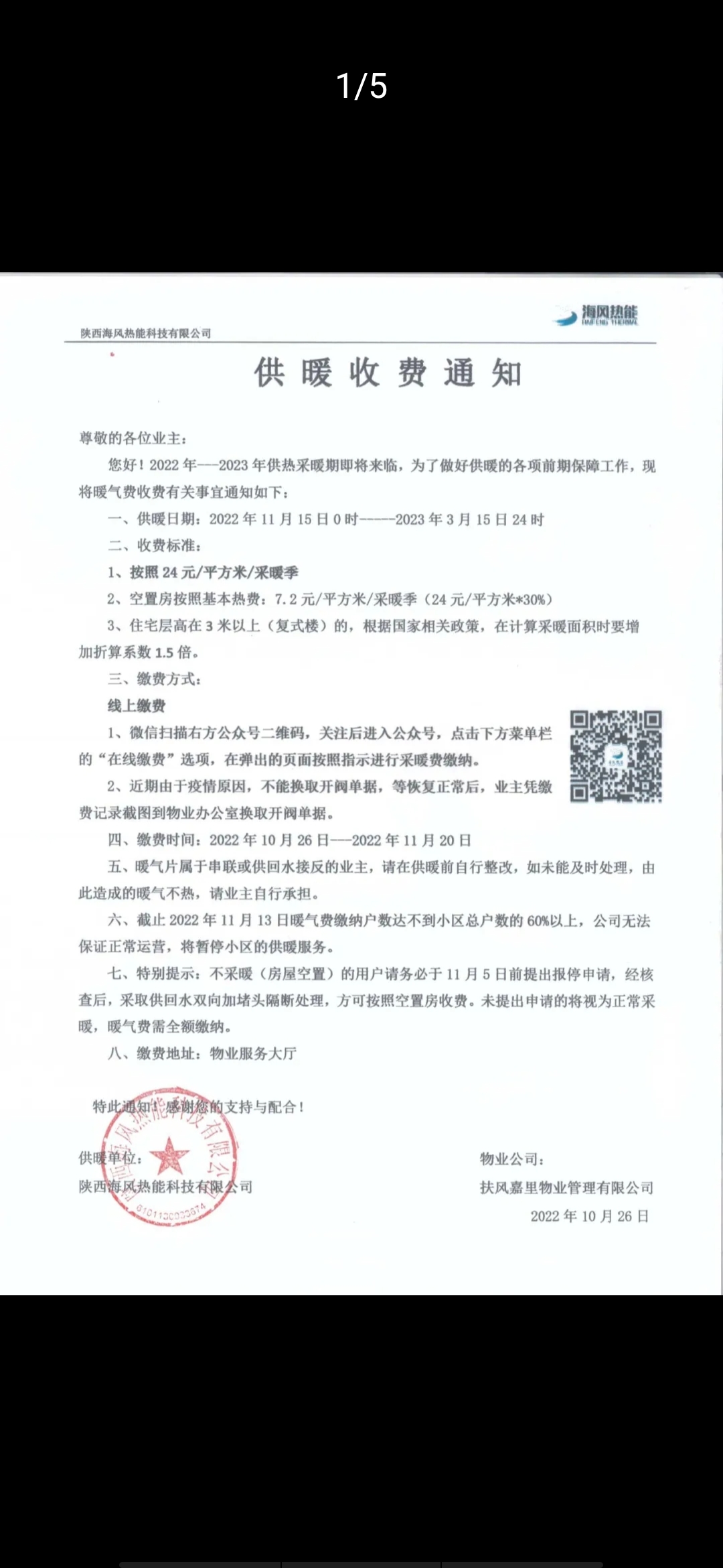 常年温度不达标,实测室内温度14.15度,无人管,物业与海风热能公司互相扯皮,推卸责任。2022年以经营不善,亏损为由私自调价,未有扶风县主管部门及业主听证会,从始至终,业主不知情,影响极坏。