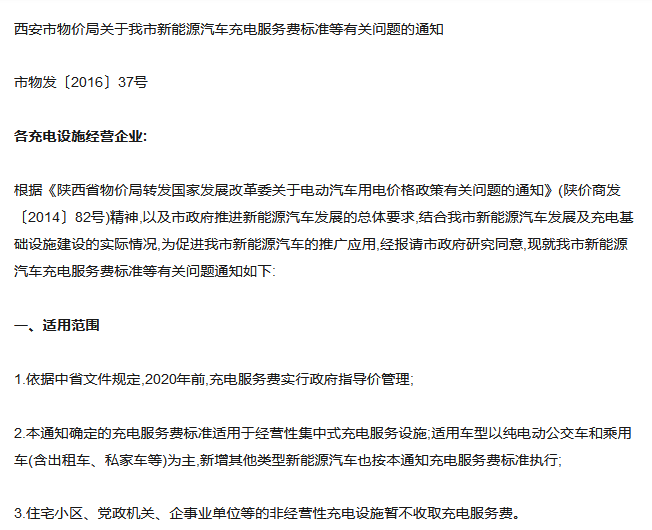 根据《陕西省物价局关于规范销售电价分类适用范围有关事项的通知》陕价商发〔2018〕65号,附件《销售电价分类适用范围》中明确:执行“居民生活用电”包含“城乡居民住宅小区公用附属设施用电”,其中包括:“执行居民电价的非居民用户中设置的电动汽车充换电设施用电”。