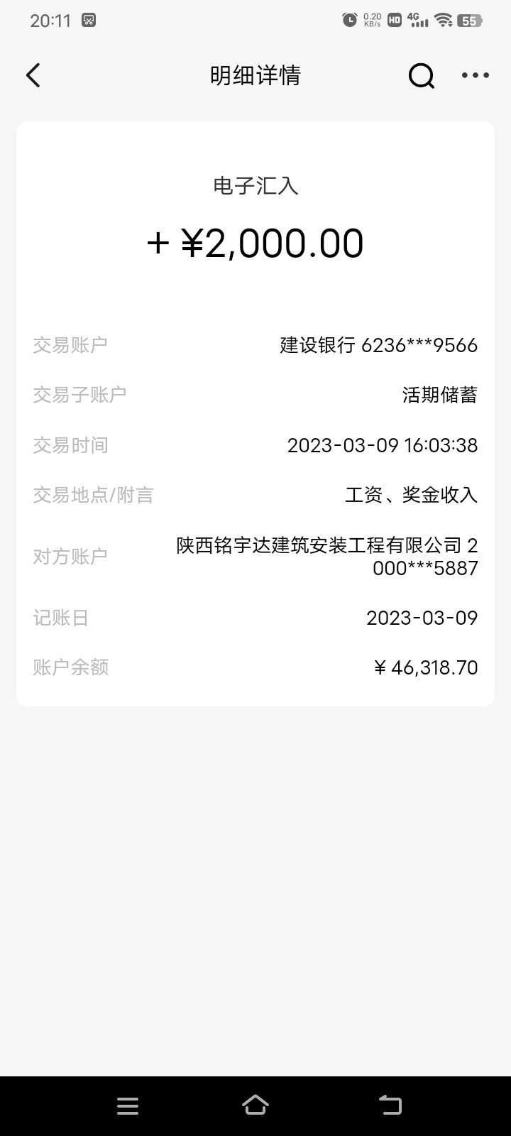 今年二月份,我和七位同事在渭南市临渭区中院审判法庭施工项目干活,现在法院都搬进新址开始正常办公了,陕西铭宇达建筑安装工程有限公司还没有结清我们的工资,给老板张某打电话,他总是说钱没到位,从来不说什么时候给。我们真的是没办法了,现在只有求助咱们栏目组帮忙要回工资。