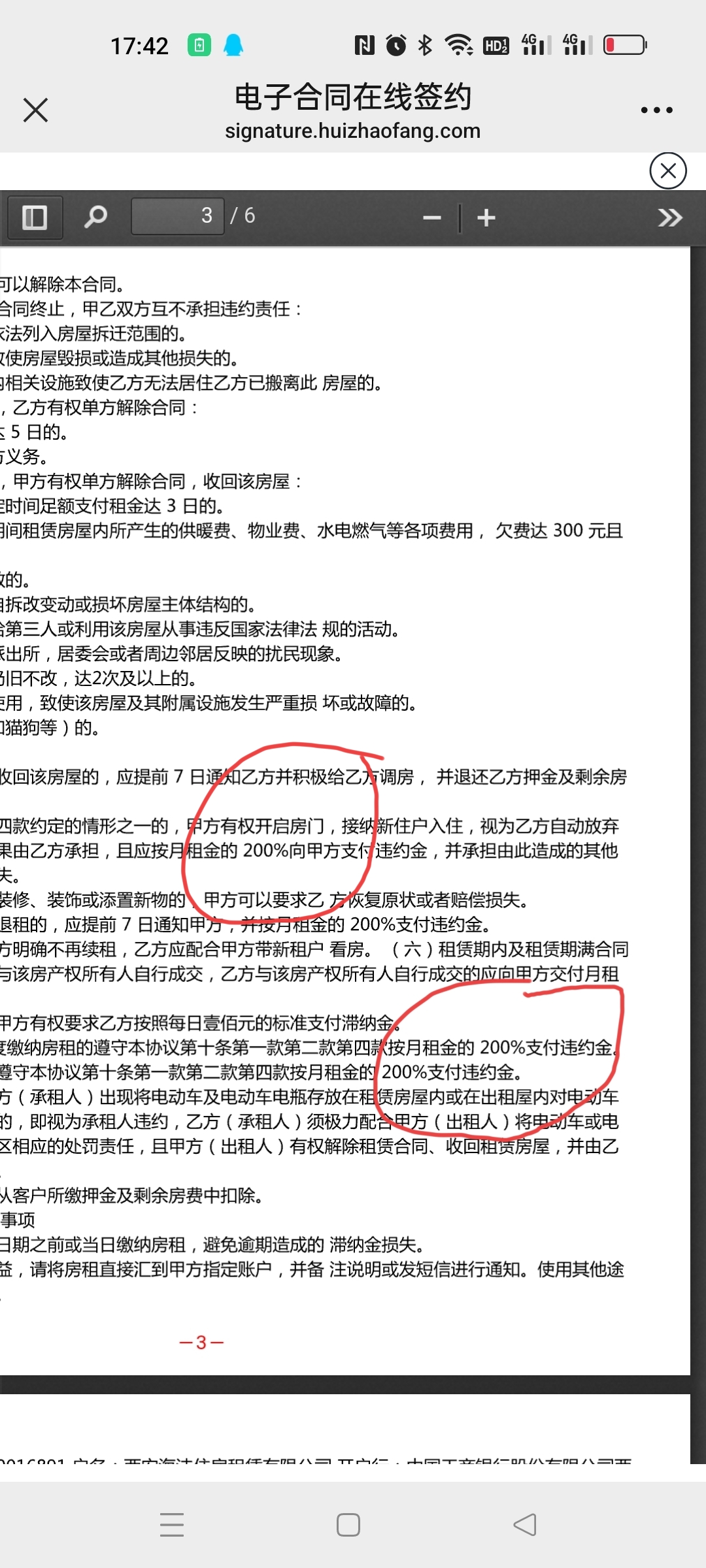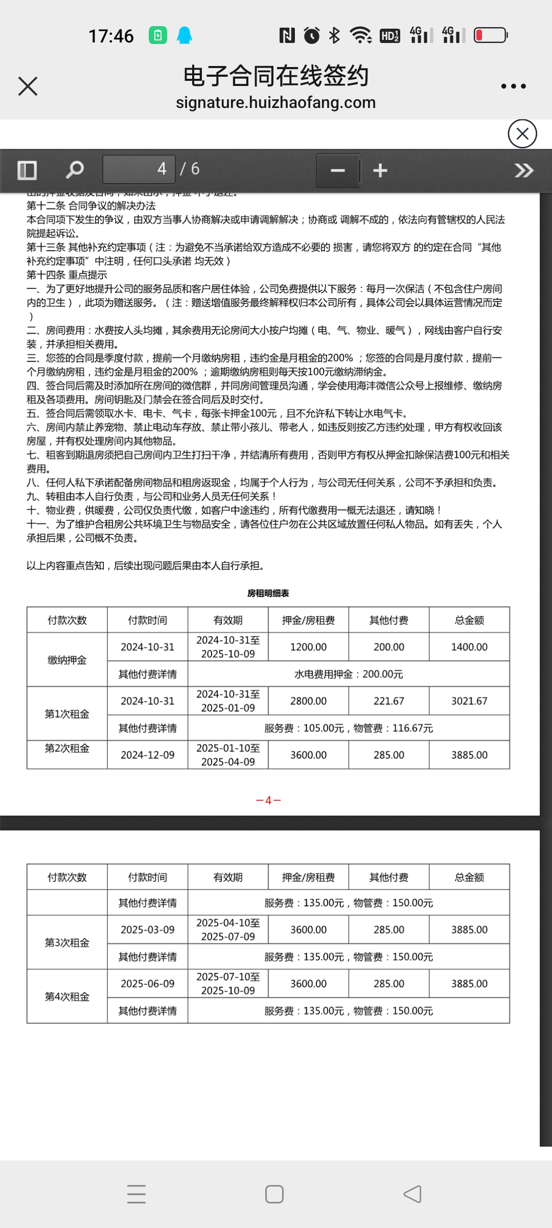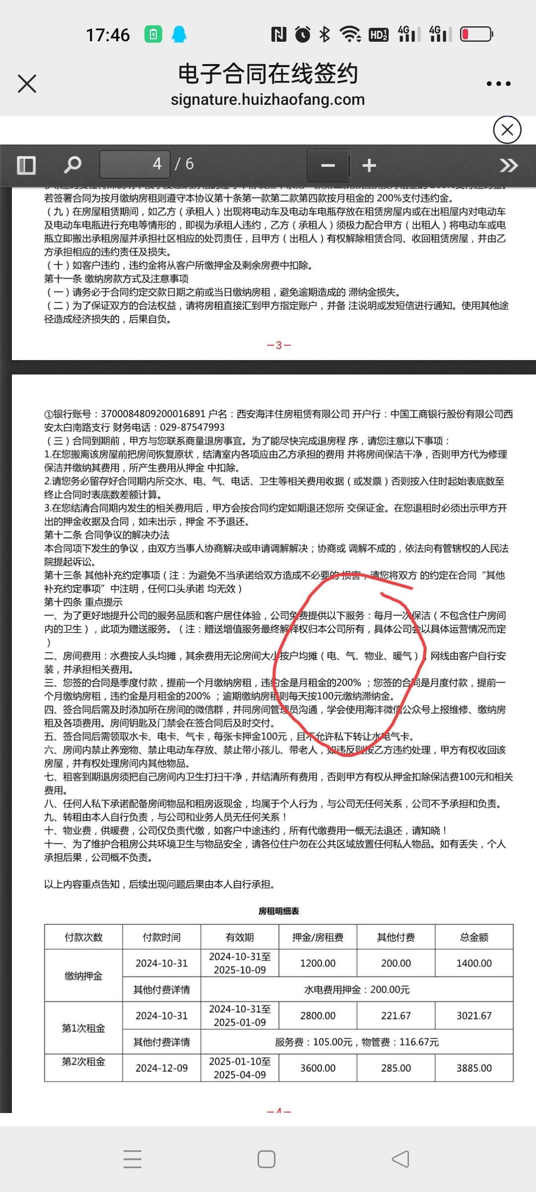 在他们的催促下,28日下午我按照他们的要求在线上签约,并缴纳相关租金以及押金共计4421.67元,签约后我联系千艺杰退小房子剩余租金的事情,这时他们却说是因为我违约了,拒绝退还2个月押金(1200元左右)。