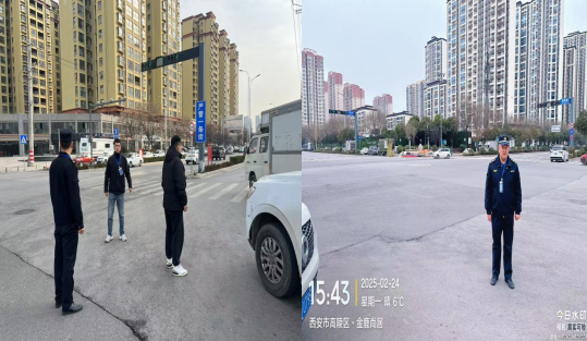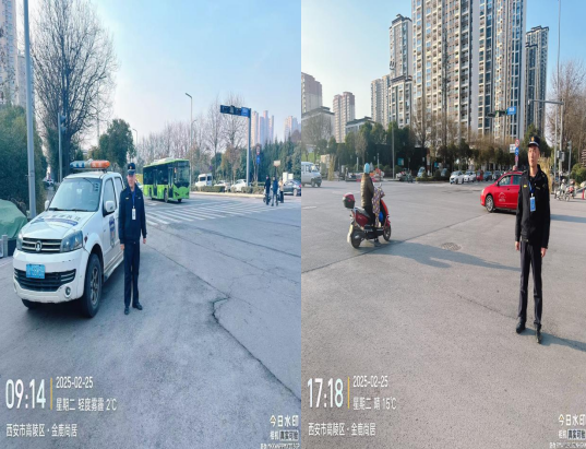 高陵区X305泾环北路崇皇街道蓝湖九郡营销中心(嘉园·蓝湖九郡店)附近,红绿灯十字路口一年四季存在占道经营,该区域属于高陵区与经开区交界,经开区处置清理完成之后跑到高陵区占道经营,该十字路口属于转弯区域严重影响交通车辆转弯。