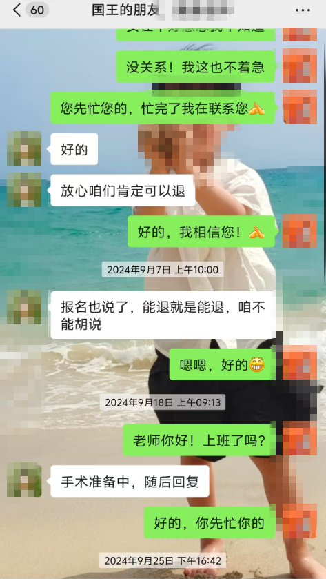投诉陕西国王的朋友教育科技有限公司,承诺的退费至今未能实现!2024年9月25日与国王的朋友签署退费审批表,说是两个月内退费到账,至今2025年2月6日仍未收到退费。期间多次与校方联系沟通,校方总是说会帮忙查看,最后都没有结果,如此大的教育集团这样毫无诚信,让人觉得失望又气愤!希望能够帮忙解决,谢谢!