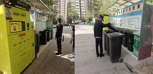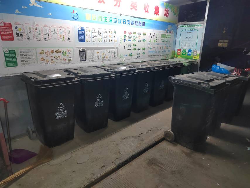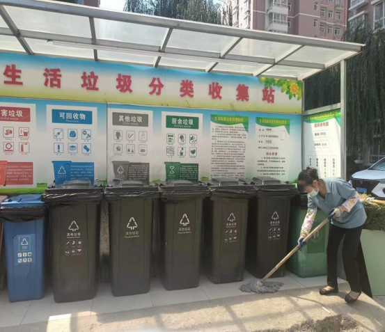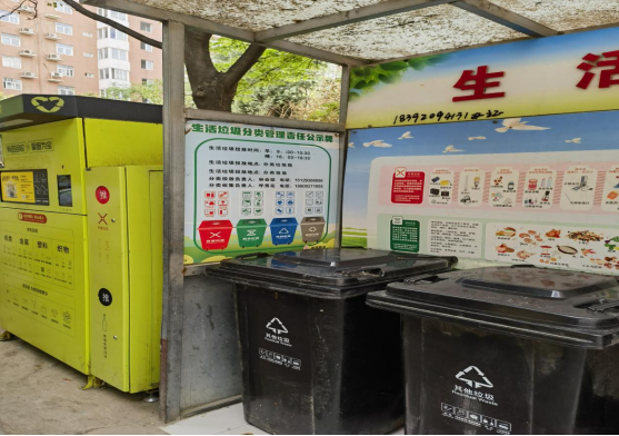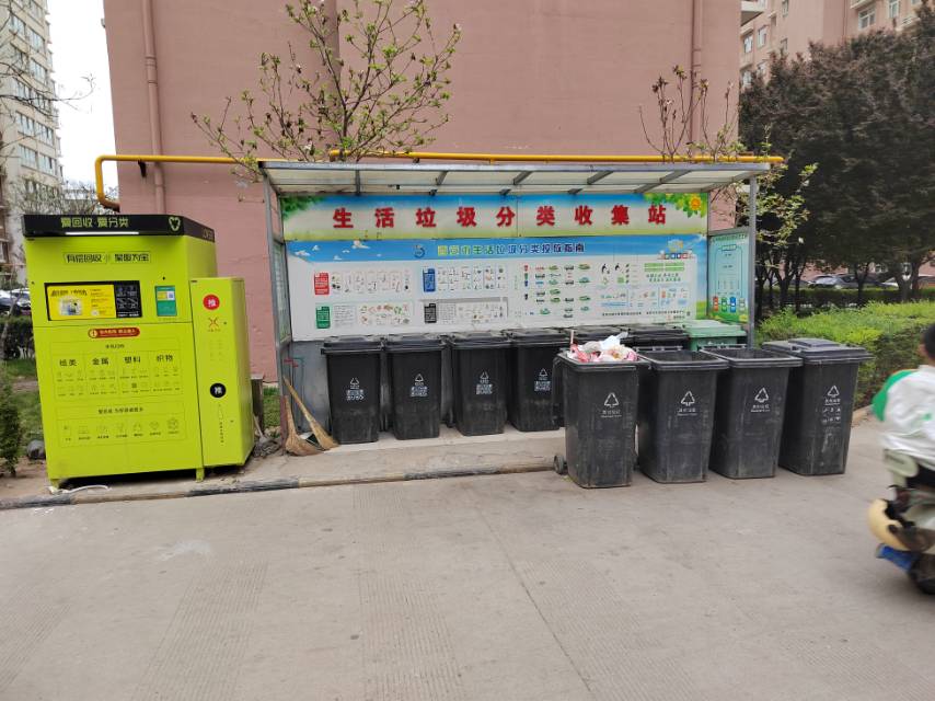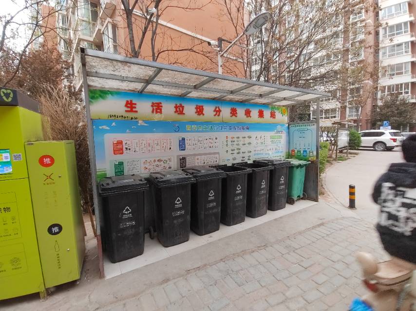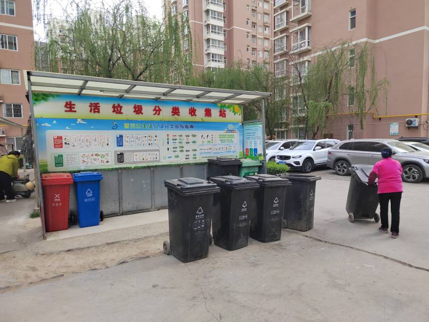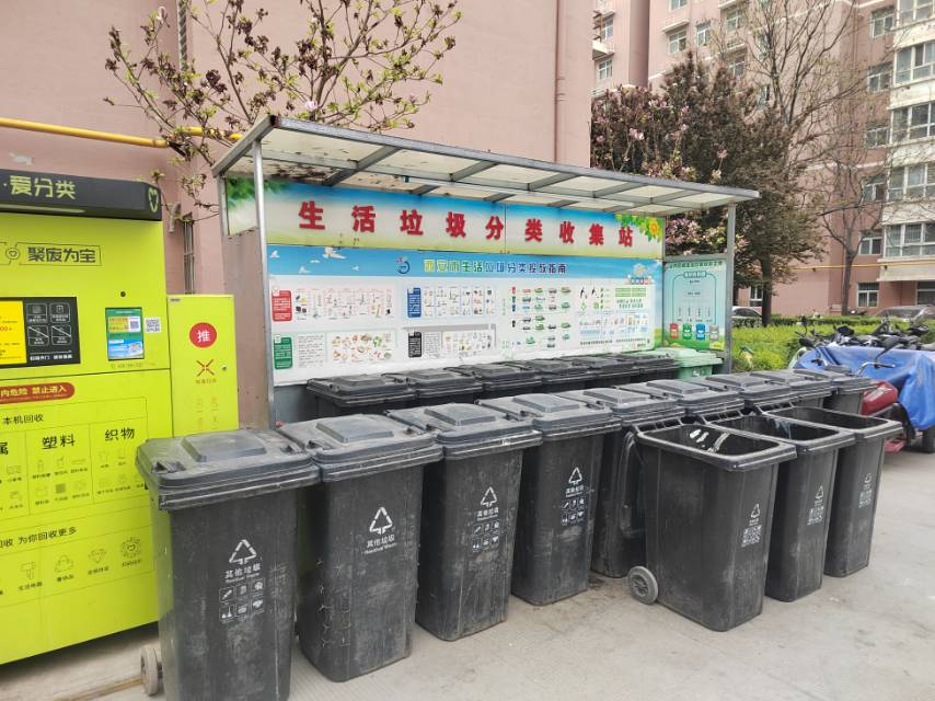 该小区位于我辖区长庆西路中段,共13栋楼,常住人口共1622户,设置垃圾分类收集点位3处,每处按要求配置了四分类收集桶,并设置定时定点投放标识。