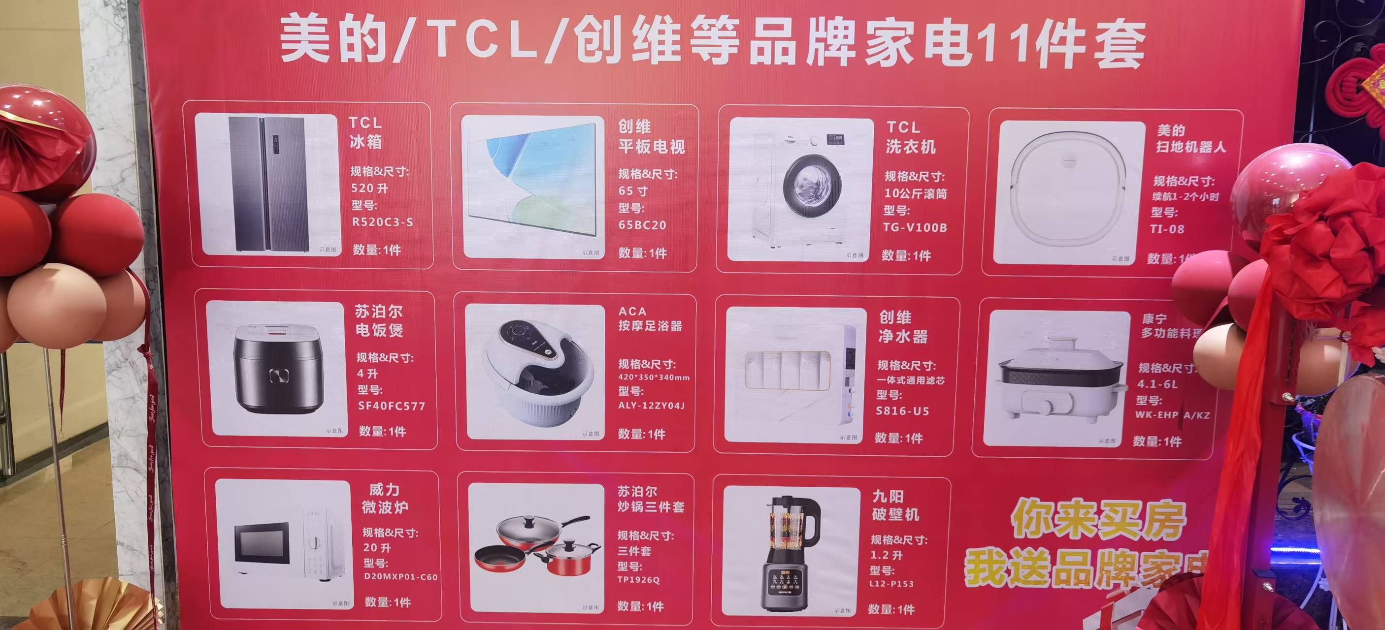 经调查,该项目开发企业自2023年3月10日起,实施购房送家电活动,情况属实;凡在活动期限范围内参与购房符合赠送条件的业主,开发企业承诺会按照活动规范落实,并且分批次陆续兑现;符合赠送条件未领取的业主如急需配送,可随时到项目售楼处进行登记,开发企业在家电购买完成后,将第一时间通知业主领取。
