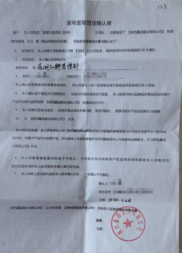西安市高陵区住房和城乡建设局回复:2025年4月14日,网友“高*”通过陕西省网络名专栏--西部网《民生热线》栏目反映“高陵区蓝湖九郡开发商不兑现赠送家电、免费使用停车位承诺”的问题,我局已收悉,现将调查处理情况汇报如下: