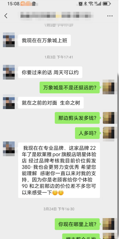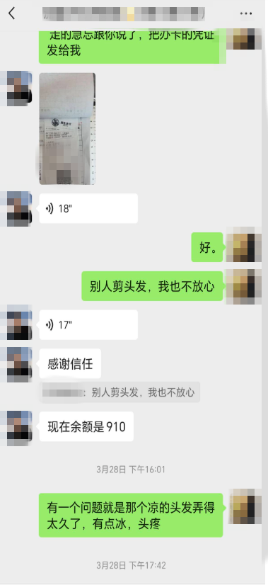 万象城流金岁月理发店员工微信给我说理发90块钱一次,让我去体验一下。3月28日我去店里理发后推荐充值,说是当天充值1000元,以后他给我理发每次都按90元收费,于是我充值了1000元。