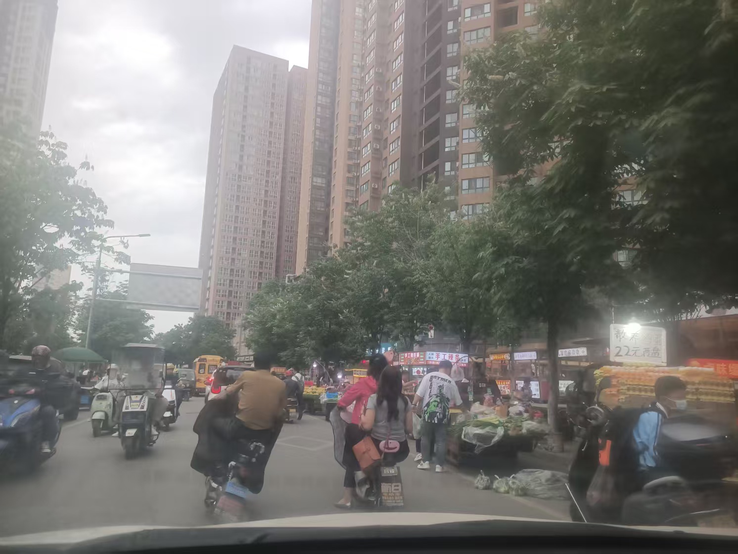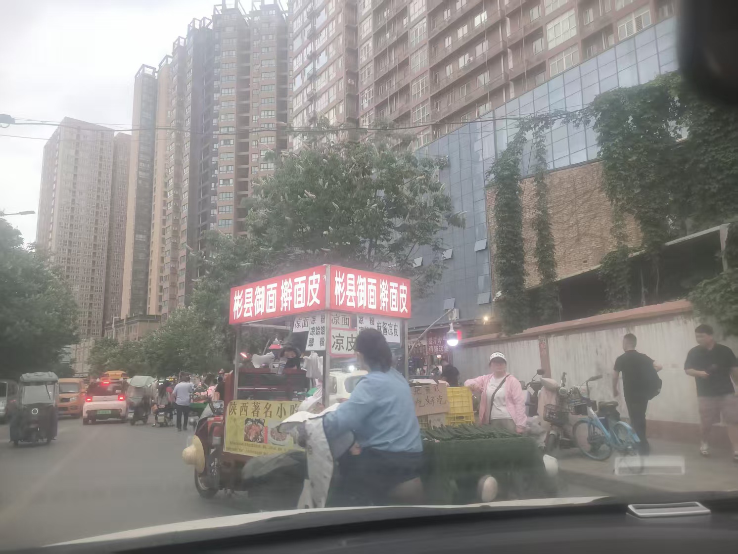 沣东新城三桥新街拥军路主路长期被摊贩占用摆摊
