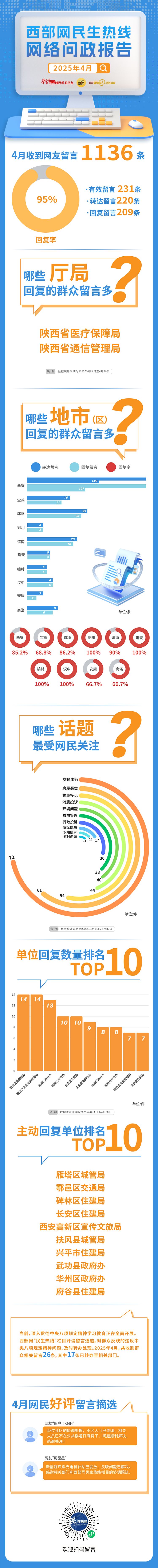 2025年4月陕西哪些地市回复群众留言最多?哪些领域投诉最受群众关注?哪些单位及时回复了网友疑惑?西部网民生热线4月网络问政报告发布,数说网上群众工作。