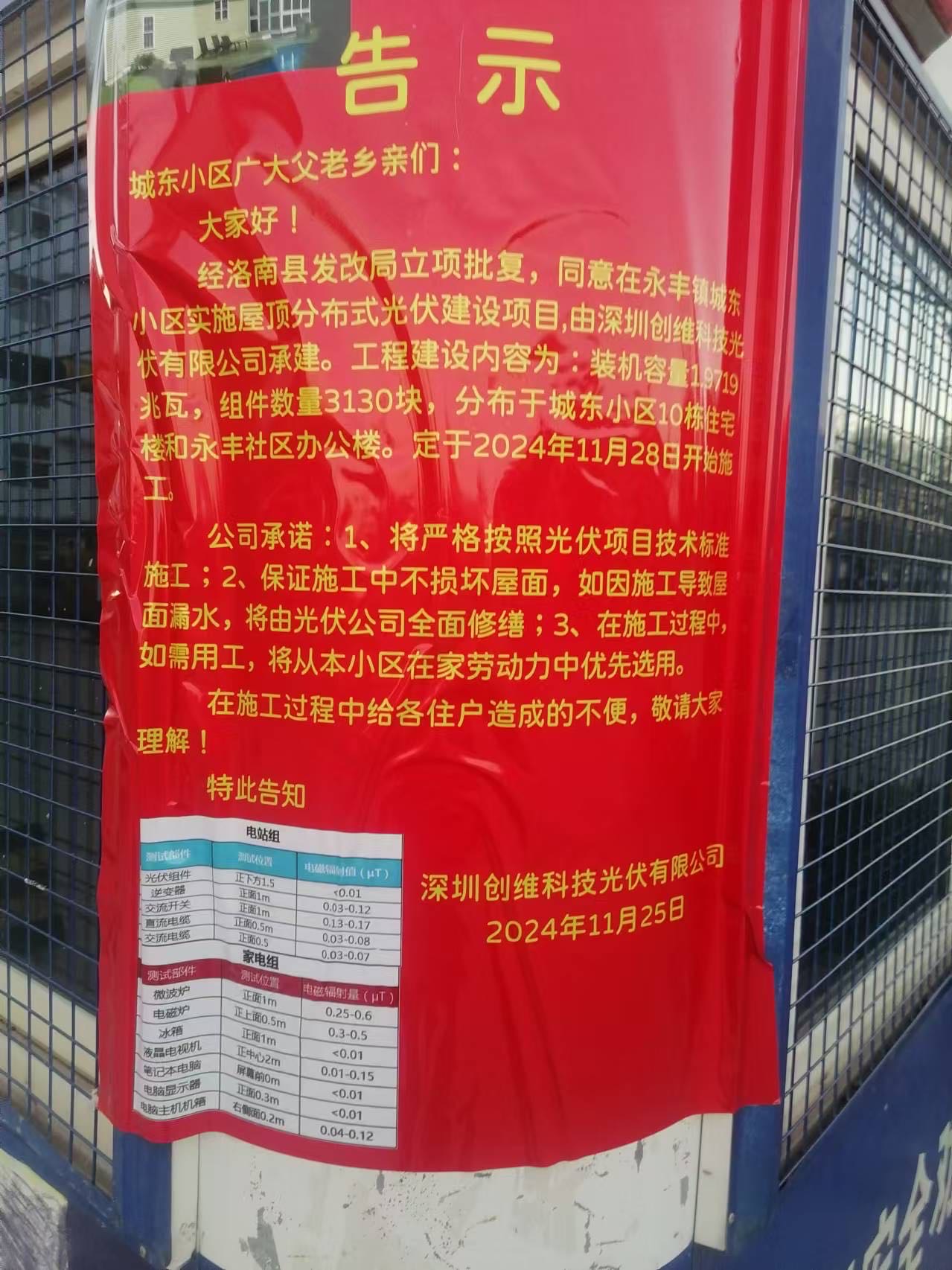 陕西省商洛市洛南县永丰镇,城东移民搬迁小区,楼顶公共区域属于全体业主共有的,在我们业主楼顶安装光伏,是不是应该经过业主同意,后续又说物业公司和社区代替业主签订了光伏合同,业主毫不知情,后续镇政府强行推进此项目,每次开会就一句大多数业主同意 ,开工八个月从来没有拿出来业主同意的名单,没有公示合同,成立业委会也没有开业主大会。