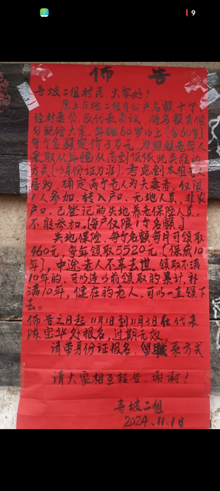 我是西安市长安区杜曲街道办寺坡村的一位村民,2023年国家改扩建包荿高速占用我村民小组十亩左右公产用地,每亩地国家给予大概6万2千元补偿款,共计62万元左右。
