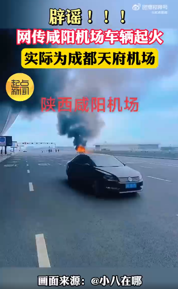 6月3日,据四川电视台新闻频道报道,成都天府机场T1至T2航站楼交通连廊上一辆电动车突然起火,经个别网友加工转发视频上显示为陕西咸阳机场,实际事发地为成都天府机场。提醒广大网友,互联网不是法外之地,不信谣不传谣。