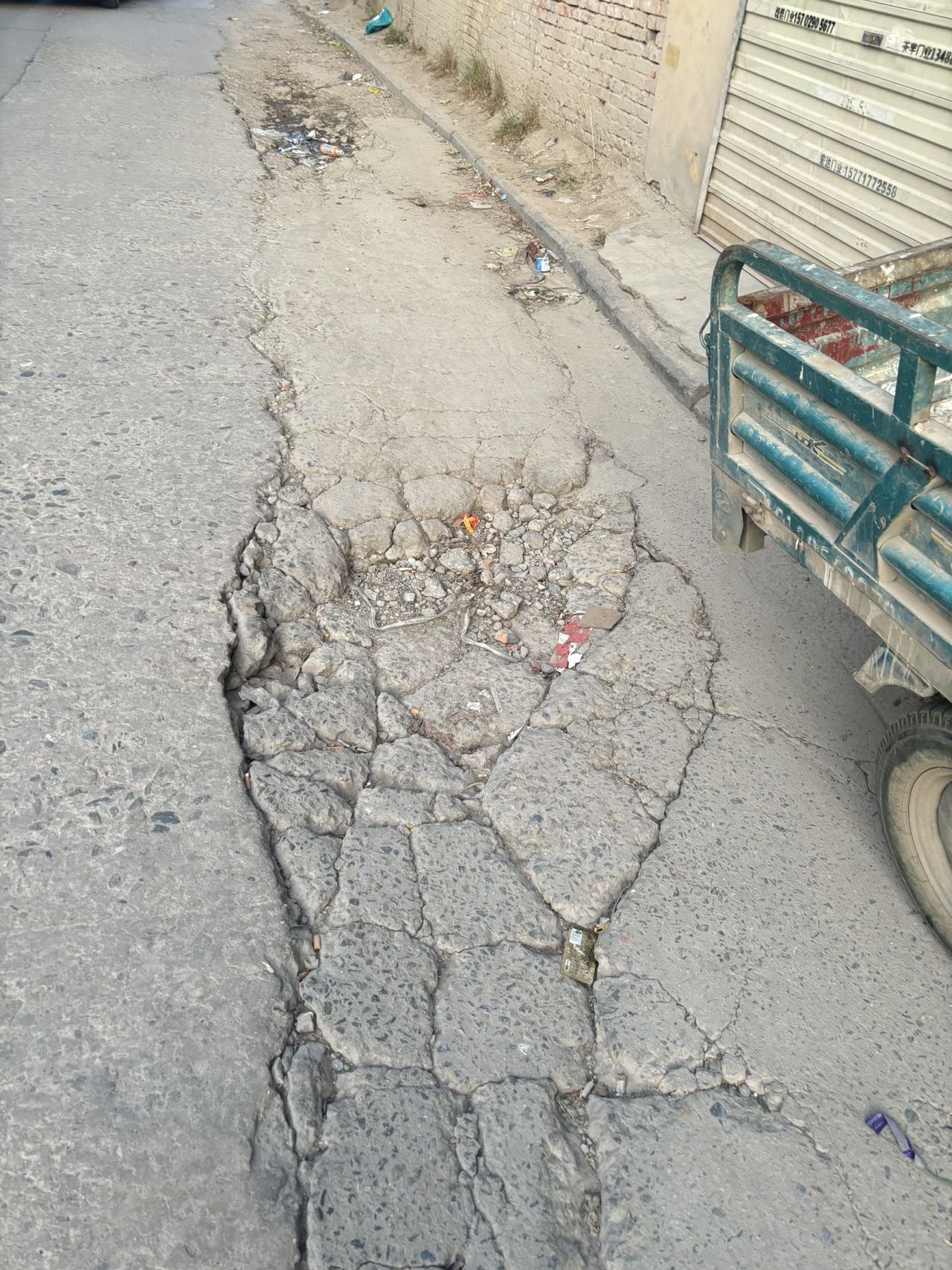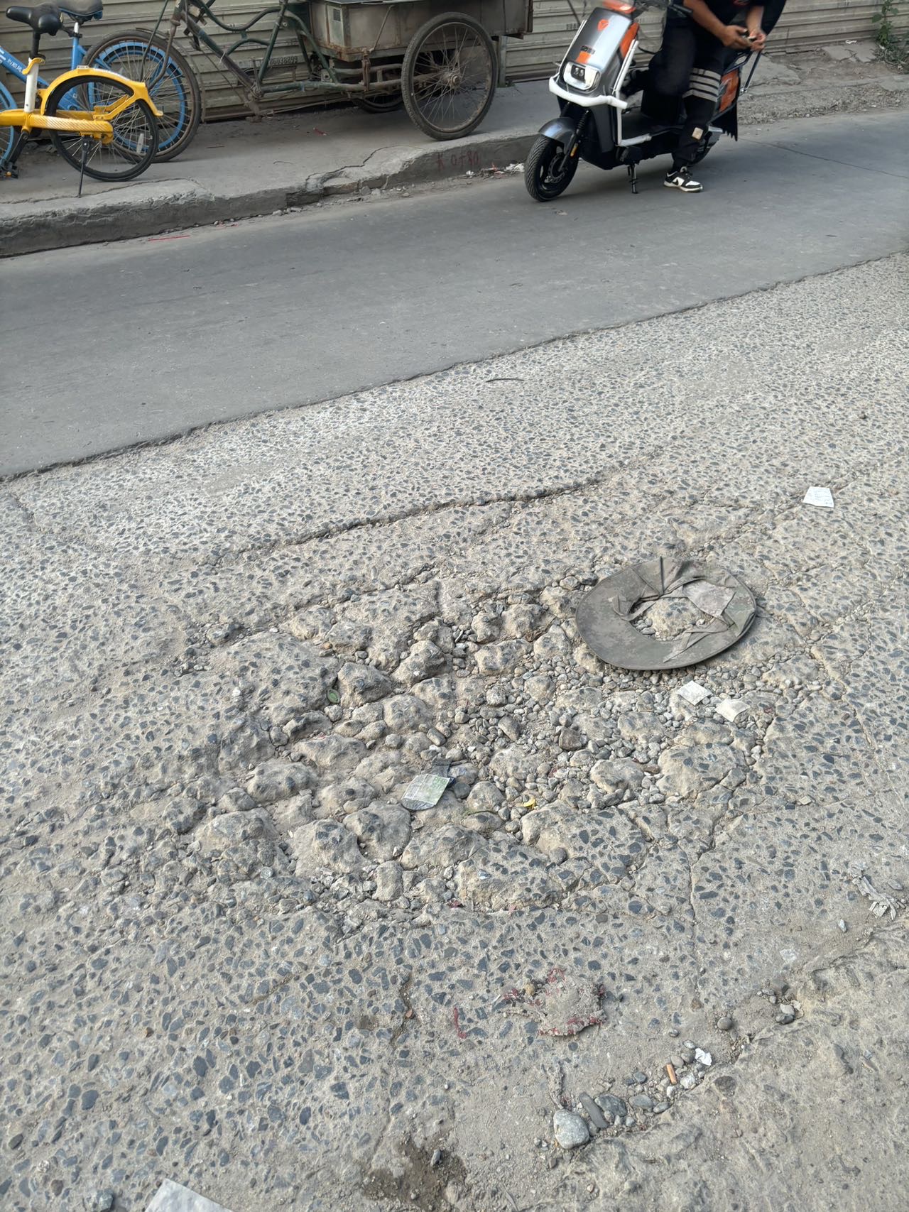 莲湖区团结西路和阿房路交汇处道路破烂不堪