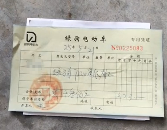 您好,5月21日,家里七旬老人将家里一辆2014年购买的爱玛旧电动车(车牌号陕C临021095)托人送到宝鸡市扶风县南大街绿驹电动车店,想换购一辆电动自行车,可气的是最后买的是一辆72v、20A的电动二轮摩托车,旧电动车折旧600元,新车花费2300元,未开正式发票。