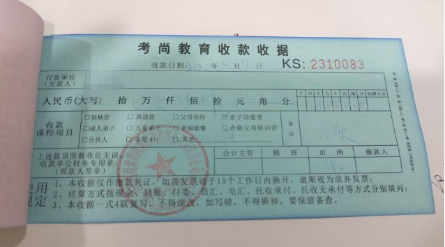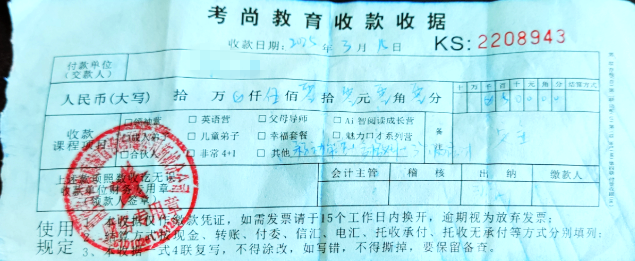 以下是他们给开的收据,聊天记录和百度对于考尚教育的评价请相关部门参考: