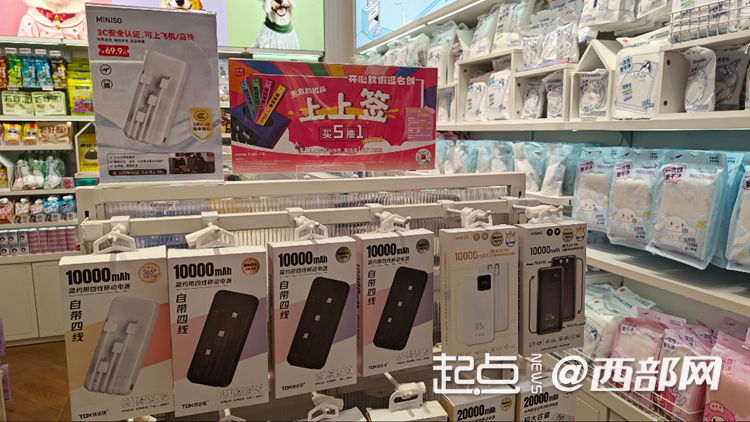 在名创优品文化大厦店内,充电宝专区已完成“焕新”:所有产品均印有清晰的3C标识,统一张贴的“可上飞机”提示贴纸格外醒目,价格从40元到99元不等。店员直言:“这两天带3C标识的充电宝卖得特别好,顾客咨询量也比之前多了。”