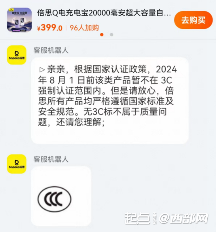 “非3C标识产品并非质量问题。” 有店铺客服解释,根据国家认证政策,2024年8月1日前生产的此类产品暂未纳入3C强制认证范围,“但所有在售产品均符合国家标准和安全规范,可放心使用。”