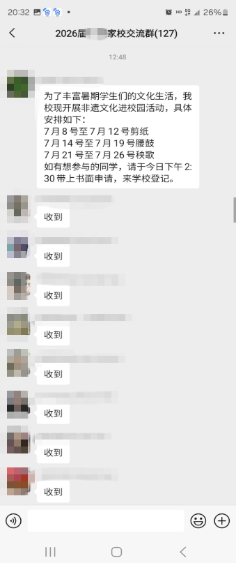 榆林市靖边县第十一中学2026届学生组织暑期补课,被投诉后表面改成了非遗文化校园活动,实际是补课,收费不合理,占用假期时间。