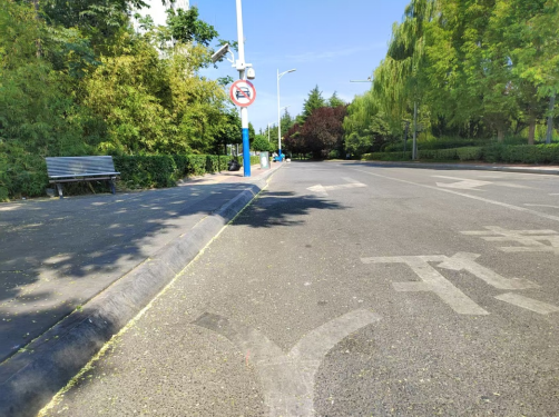 当事人所反映的违法地点,位于杨凌示范区渭惠路与迎宾路十字交叉口以西的南侧辅道。渭惠路为东西走向,属于城市主干道与104省道合并段,该路段道路断面为双向六条机动车道及两条辅道,因渭惠路南侧紧邻渭惠渠,由于空间因素,建设单位将该路段的南侧辅道设置在渠道以南,并未和主车道在同一断面。该路段原设置为非机动车道,因周边居民区及单位的逐步建设,考虑到周边群众的出行需求,由城管部门将该非机动车道出入口进行展宽,允许机动车顺向通行,该路段目前为机非混合车道。