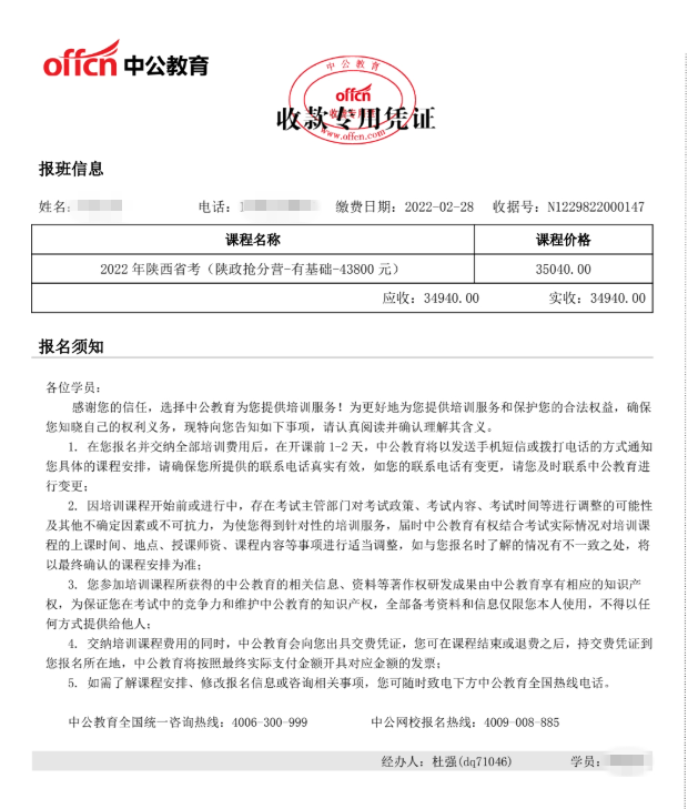 本人于2022年2月28日在榆林市榆阳区报名中公教育,承诺考试不过全额退费协议班,共缴费35040元,协议承诺申请退款后45个工作日内全额退款,目前已拖延3年时间,还有一半学费未退回,我与中公工作人员协商多次无果。希望有关部门可以帮忙解决。这样的机构拿着消费者的钱多年不退还能正常运行,老百姓应该如何维护自己权益。