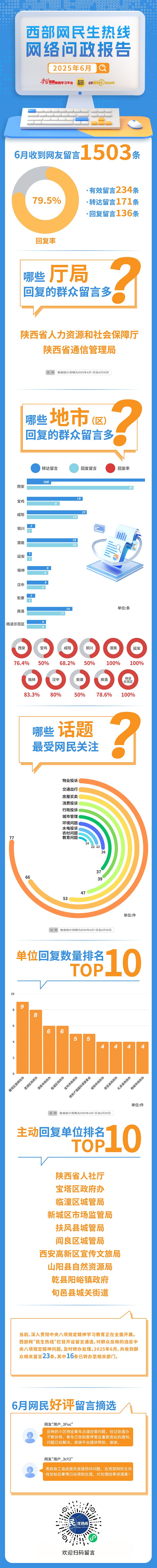 2025年6月陕西哪些地市回复群众留言最多?哪些领域投诉最受群众关注?哪些单位及时回复了网友疑惑?西部网民生热线6月网络问政报告发布,数说网上群众工作。