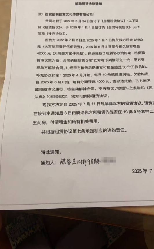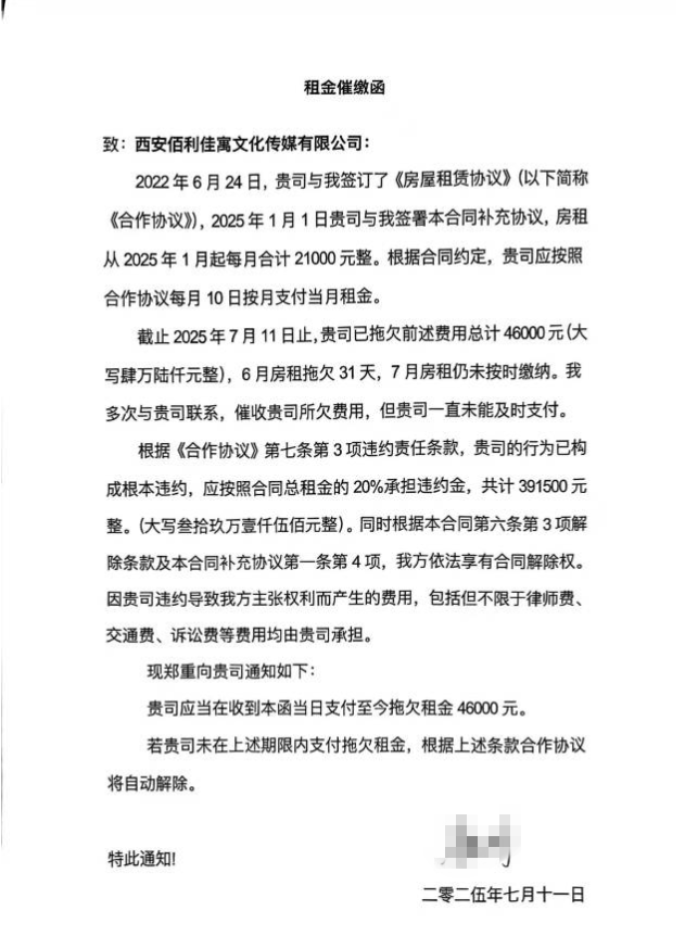 2024年10月份,本人与西安佰利佳寓住房租赁有限公司签订租赁合同,租赁雁塔区陈家庄15店10幢9单元702房间,租期为2024年10月26日至2025年10月25日止。2025年7月,由于西安佰利佳寓住房租赁有限公司拖欠房东租金,无法正常将房屋租赁给我,该公司已违反租赁合同,且不退剩余房租2550元及押金950元,共计3500元。