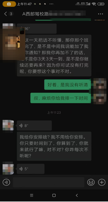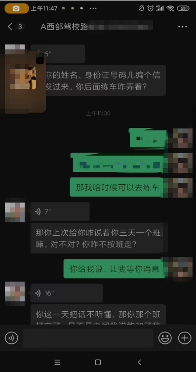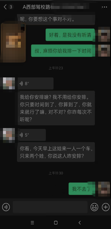 家人想要商议退还剩余课时费用,教练一口告知退不了,是教练先产生问题我们才提出了退费这一要求,并且只要求退还剩余课时费。本人再次联系教练,教练咬定退不了然后把电话挂断。