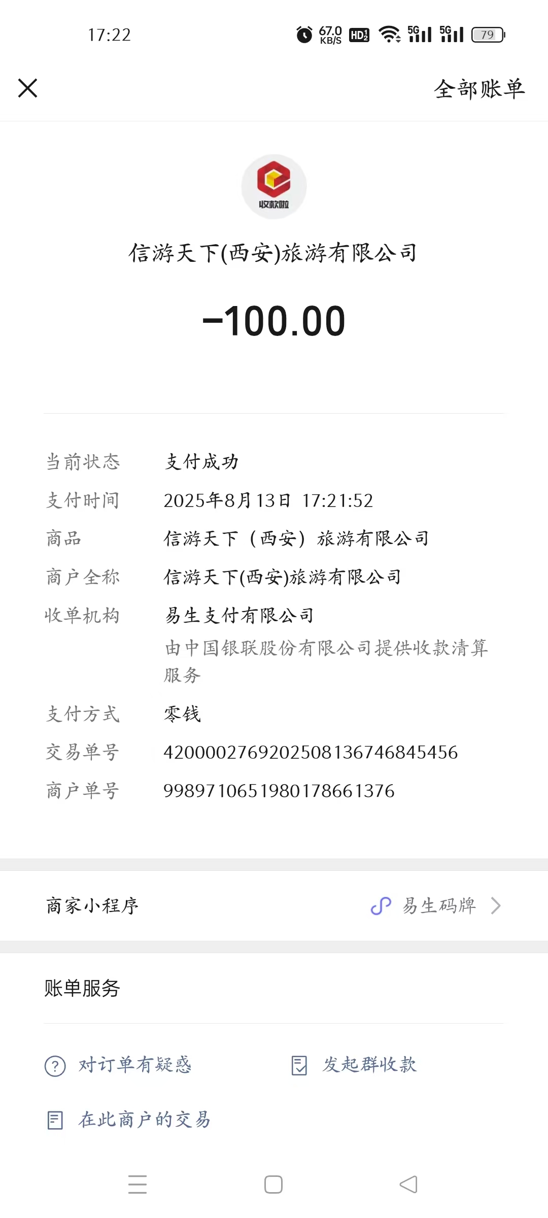 我于2025年8月13日在抖音咨询了信游天下(西安)旅游有限公司,他们的客服微信向我推荐了西安旅游计划,当时谈好了价,我交了100元订金,客服承诺后期不去订金可以退。