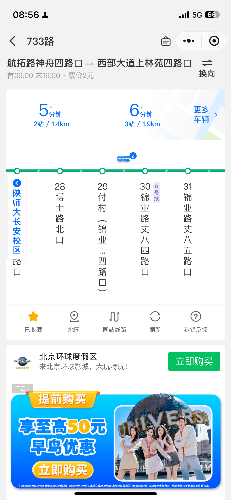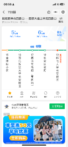 8点55分两辆733路在丈八四路重合,两辆733路在长安区政府重合。