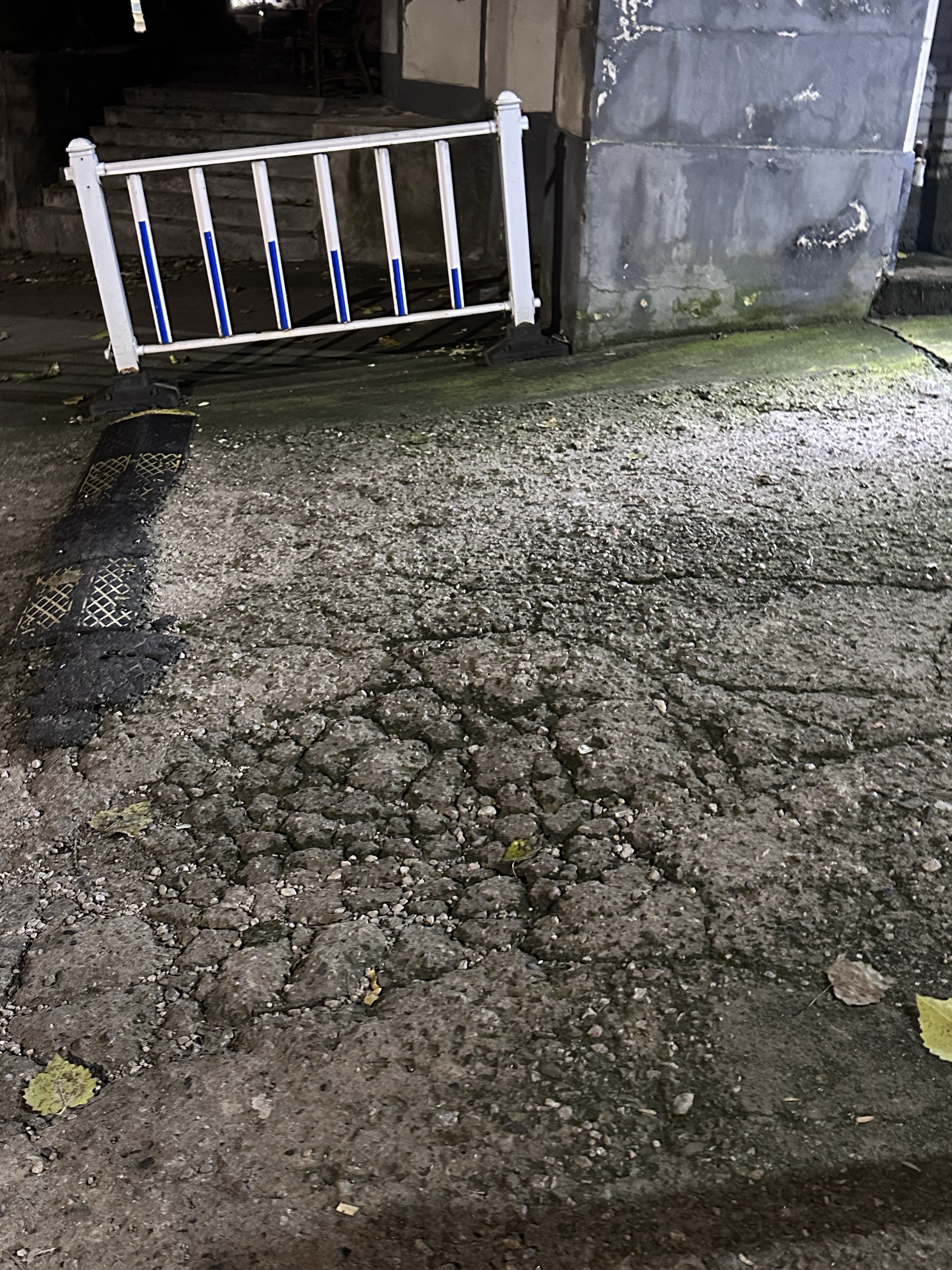 您好,我是雁塔区长延堡街道齿轮厂小区业主。小区大门口的黑色路面破烂不堪,地面有一个深坑,严重影响居民通行,尤其是到下雨天。该小区大多都是老人小孩,请相关部门来实地调查,尽快修整路面!
