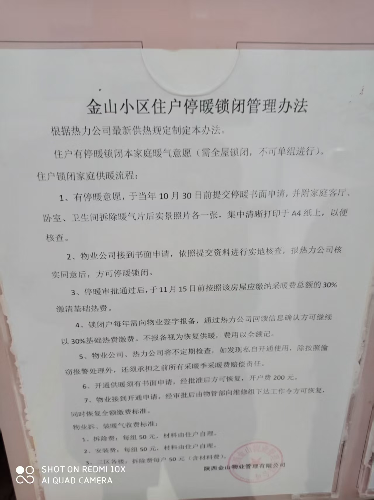 咸阳市秦都区渭阳西路街道办事处回复:关于金山雅苑小区空置房供暖费问题的回复,金山雅苑小区为2000年以前建成的老旧小区,其供暖系统采用串联式设计,即小区住户暖气管道相互连通,无法单独实现单户停暖或控制。