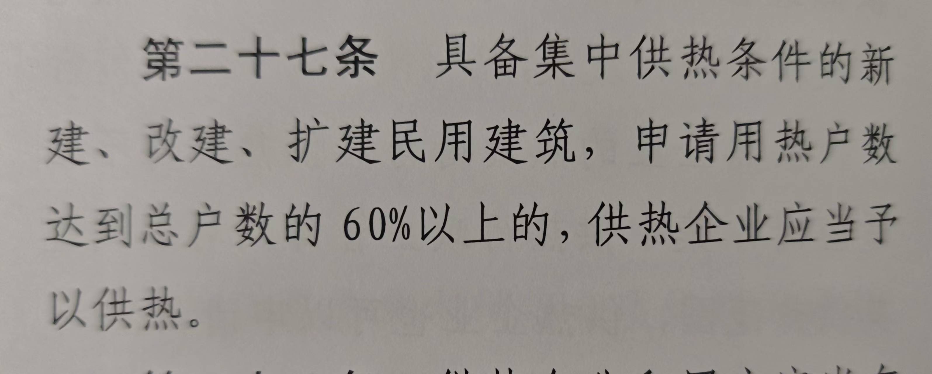 我是阎良龙记观园的业主,我们小区原定于2023年6月30日交房,后延期一年与2024年6月办理装修(仅可以装修入住,房本,车位都没好),去年城北热力给的说法是第一年不供暖,今年是第二年马上入冬,国庆期间统计了需要供暖的人数,有42户,今年又已入住率达不到60%为由不给供暖。现诉求如下: