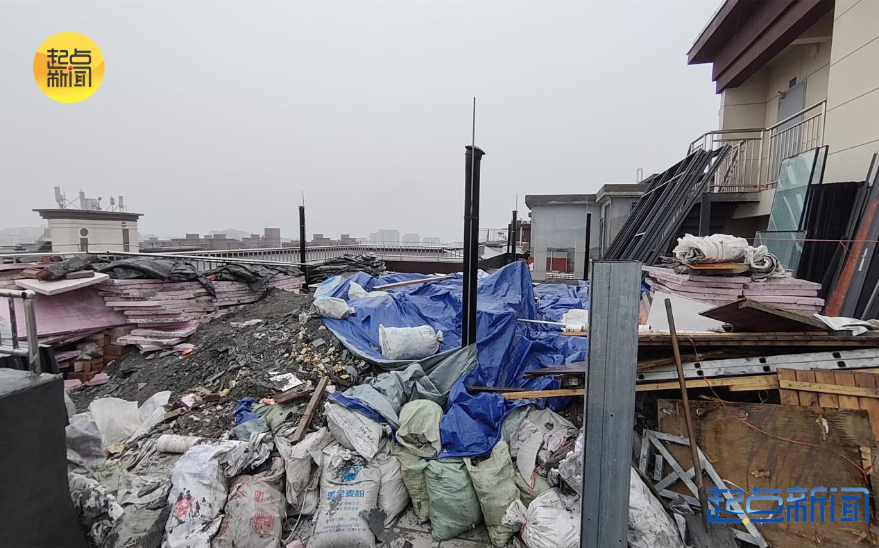 “天一城市之光翰林府小区”9号楼2单元楼顶的建筑垃圾