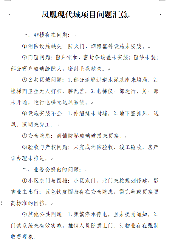 5:凤凰现代城4号楼消防设施,防火门,烟感等均未安装到位