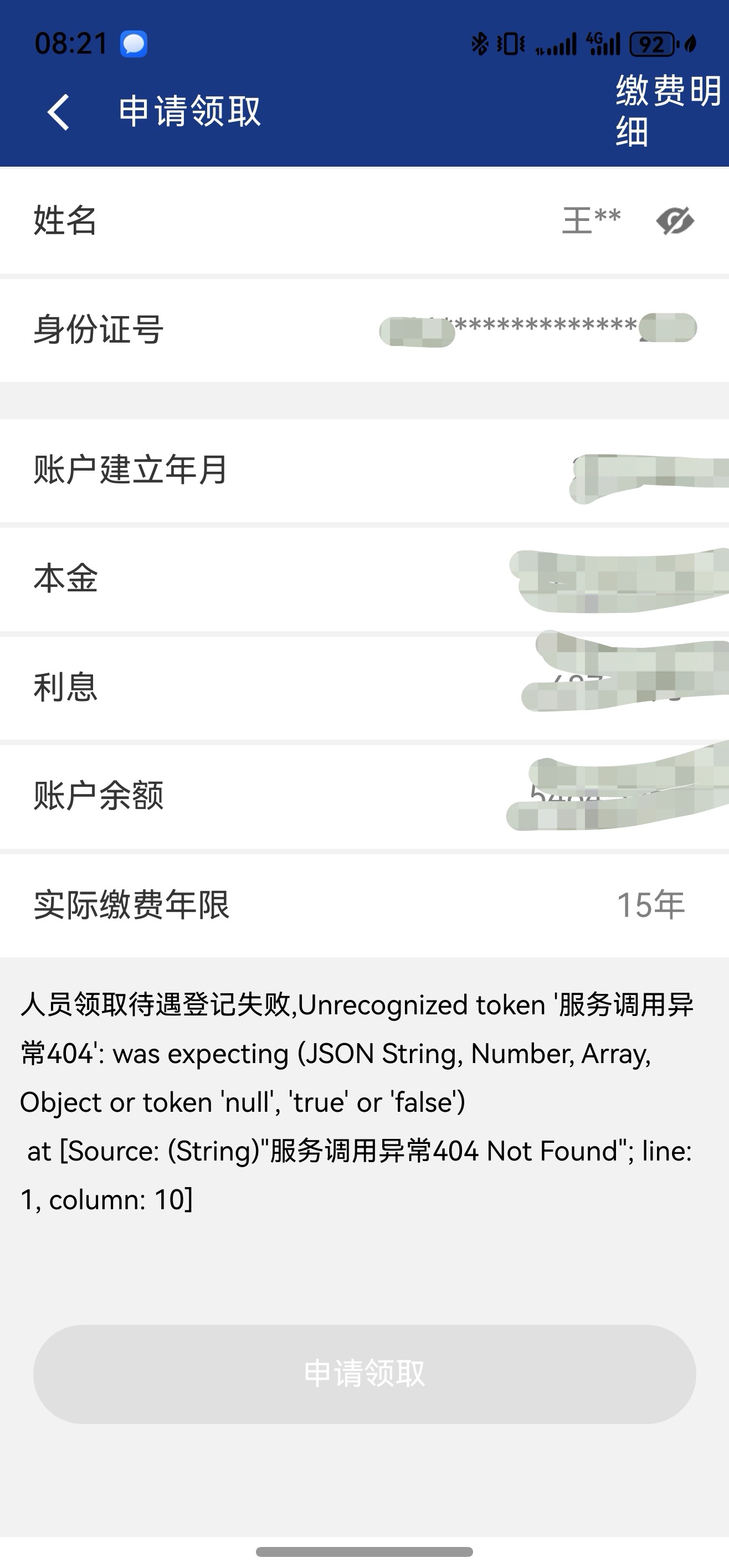 村上通知说养老保险可以领取了,让按照步骤自己在App上领取,可是一周多了一直显示人员领取待遇登记失败,打电话咨询说是后台系统数据问题,可是都一周多了也没解决。