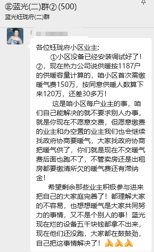 咸阳蓝光雍锦府小区延期交付既不赔偿,也不解决包括消防安全在内的任何遗留问题。咸阳万玉科置业有限公司指定同属四川蓝光集团旗下的嘉宝物业进驻,物业事事以开发商未移交为由不解决问题,开发商5000元的供暖配件1分钱都不掏,光今年已经耽搁了2个月。一墙之隔西区供热公司以30万资金缺口为由,拒绝供暖。小区业主自今年夏天以来,已经多次通过多个渠道反馈问题,至今没有能供暖的迹象。请上级部门关注,解决民生大事。