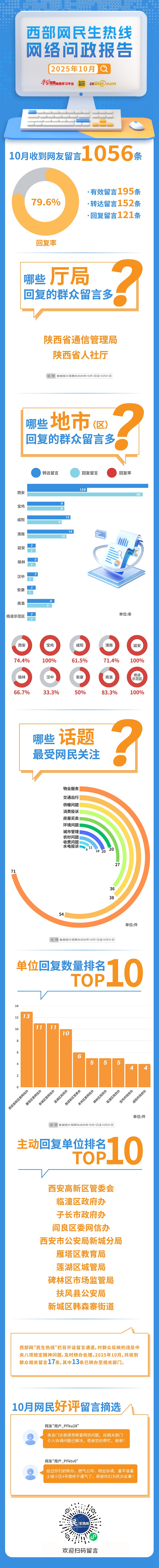 2025年10月陕西哪些地市回复群众留言最多?哪些领域投诉最受群众关注?哪些单位及时回复了网友疑惑?西部网民生热线10月网络问政报告发布,数说网上群众工作。
