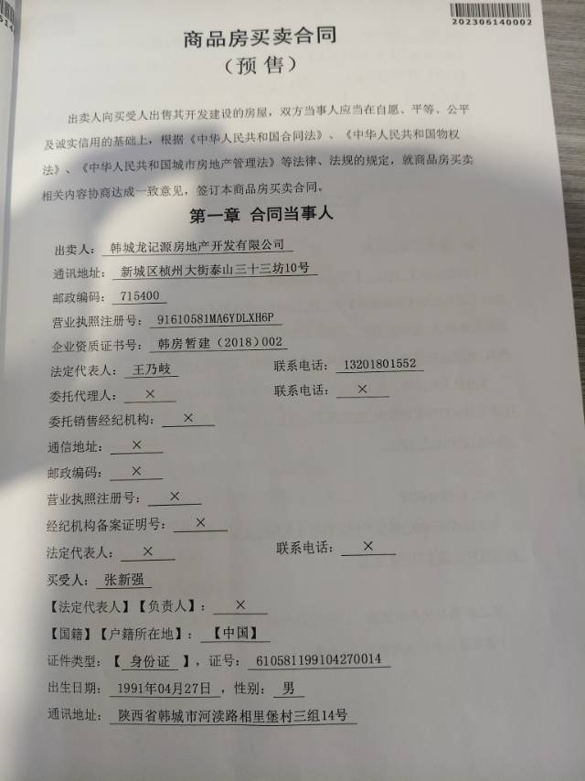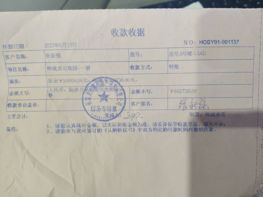 我是韩城市相里堡村三组居民张新强,2023年年初,我在韩城市龙记观园小区购买了一套商品房,直至今日2025年11月21日,韩城市龙记源房地产开发有限公司不给我办理备案登记。多次协商无果,诚请相关部门为民做主。感谢。