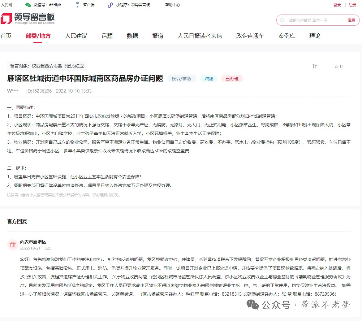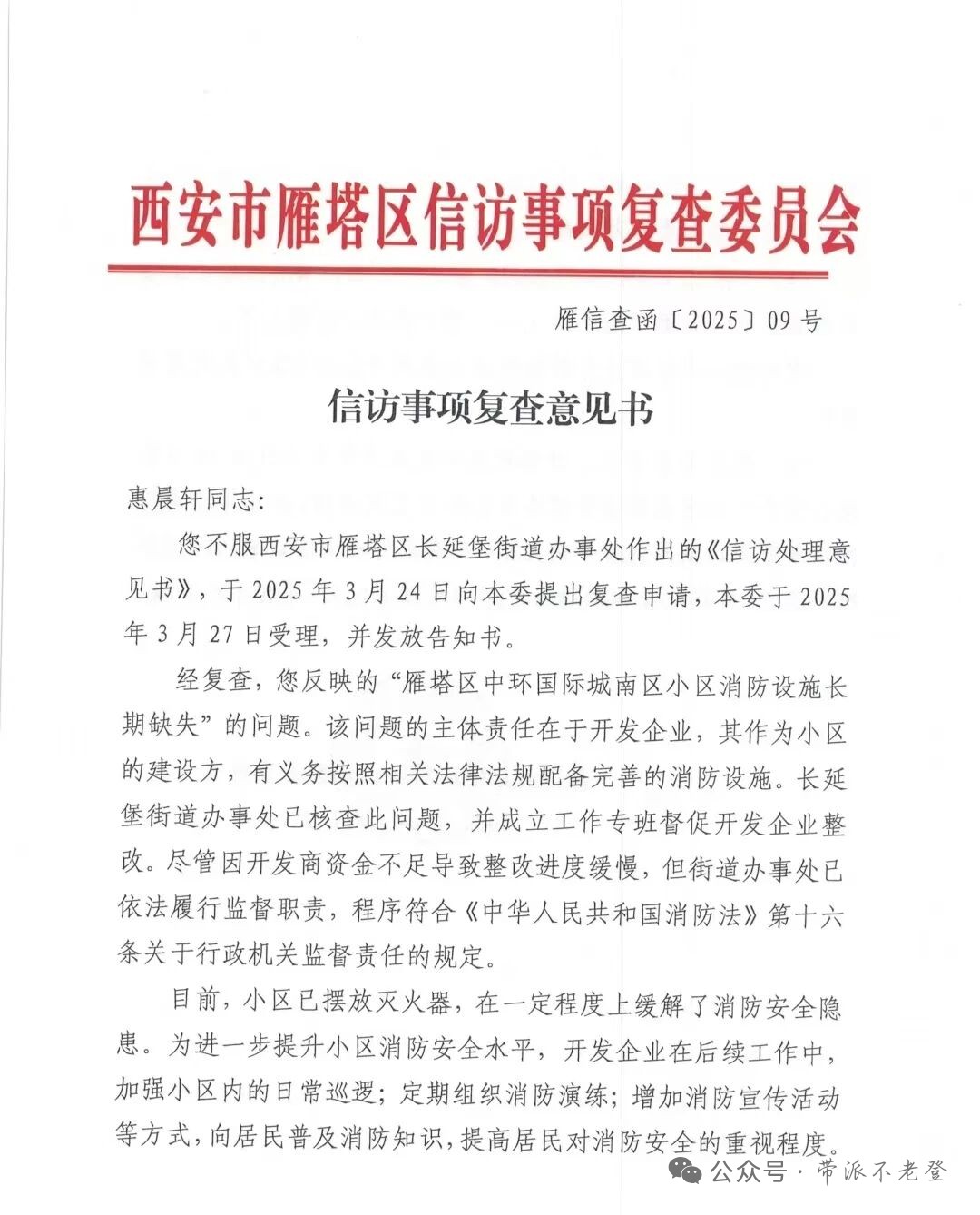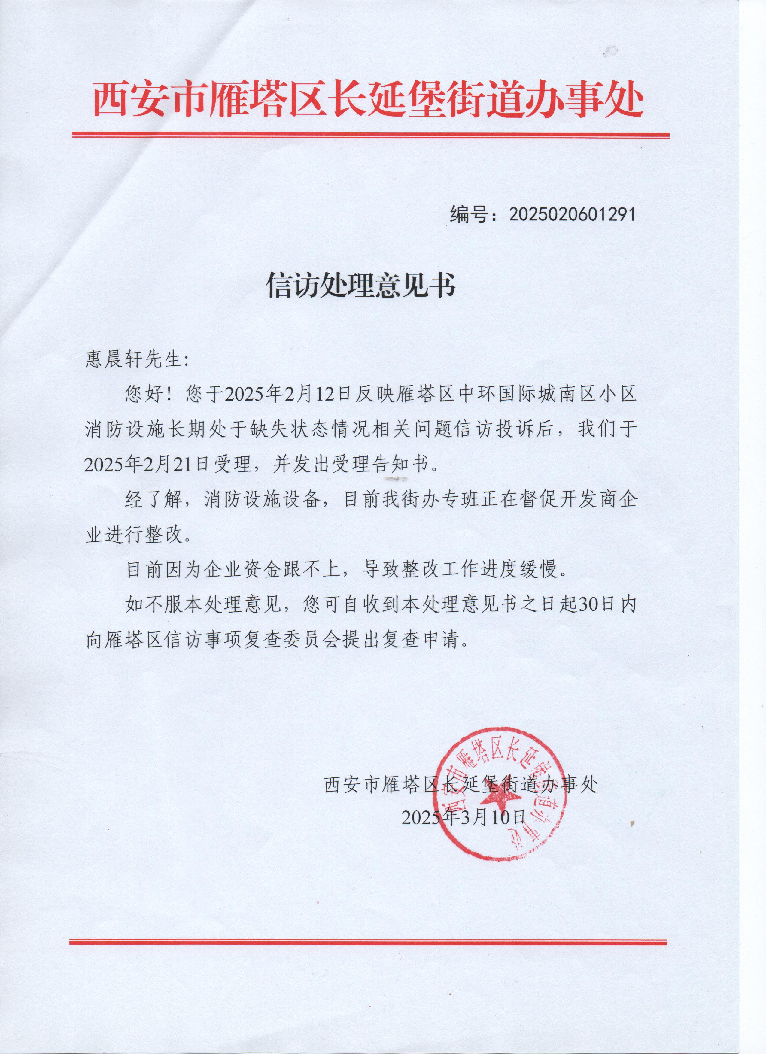我是西安市雁塔区中环国际城南区居民,现紧急反映本小区消防设施严重缺失问题。小区位于长延堡与杜城街道共管区,消防设施缺失严重,存在极大安全隐患。虽多次反映,但问题未得实质解决。消防设施关乎居民生命财产安全,缺失违法且威胁居民安全。望相关部门及媒体单位重视,尽快介入。