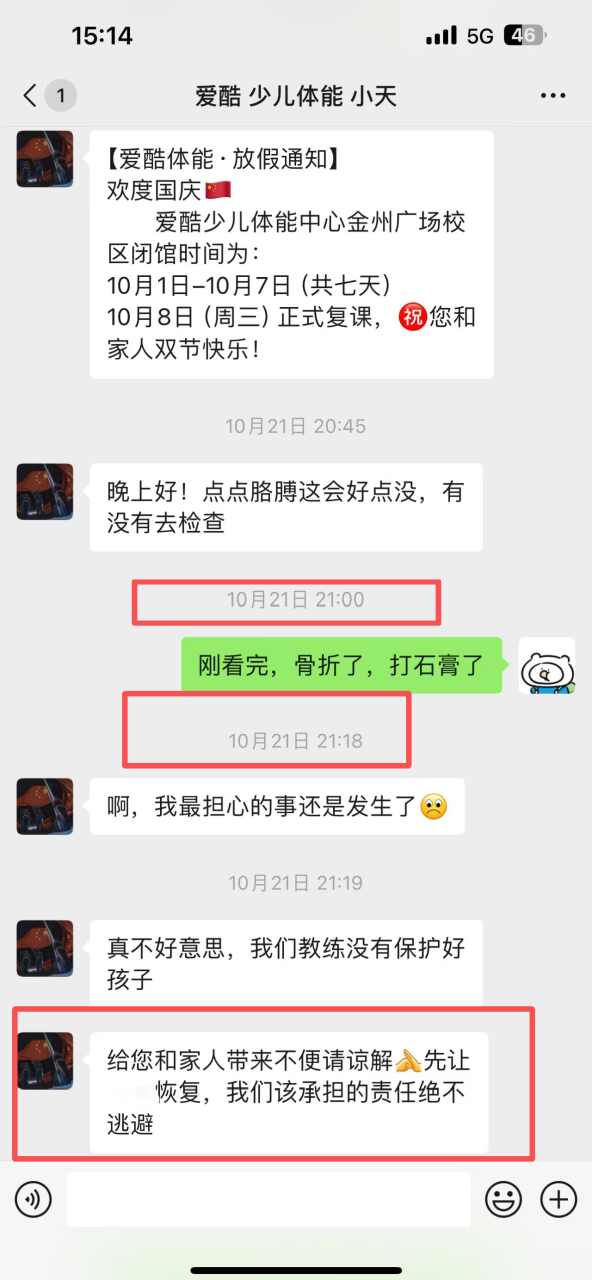 1.贵中心对于这个年龄段儿童进行训练时,是否有明确的安全操作规范?教练在课程中应承担怎样的看护责任?2.在与贵中心沟通时,客服曾明确表示“1、2、4条(退费、医疗费、营养费)我们是必须要做到的。”这是否代表贵中心当时承认了对事故负有主要责任?3.既然承认了责任,为何在后续的司法所调解中,对于家长提出的、用于补偿家人42天全天候护理的护理费,以及对孩子精神伤害的抚慰,采取了“请走诉讼,法院判多少我们认多少”的态度?这是否意味着贵中心解决问题的诚意发生了变化?贵中心如何解释这种从“愿意做到”到“拒绝协商”的转变?4.“请走诉讼,法院判多少我们认多少”,是否代表了贵中心处理此类事件的常规态度?如果其他家长遇到类似情况,他们是否也只能得到同样的答复?”