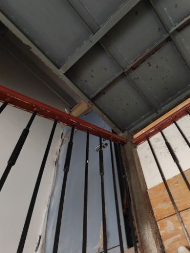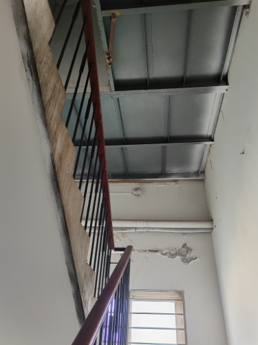 地点:雁塔西路168号翔瑞宜人家园B座24楼到25楼之间的消防通道内,都市118酒店用铁皮搭建了两间客房。
