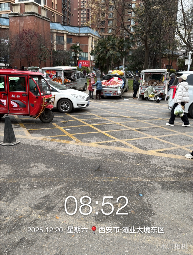 3. 问题严重性: 该道路是连接周边五六个小区居民出行的唯一主干道。占道经营行为导致道路有效通行宽度被大幅压缩,尤其在早晚高峰时段交通陷入拥堵,车辆通行困难。