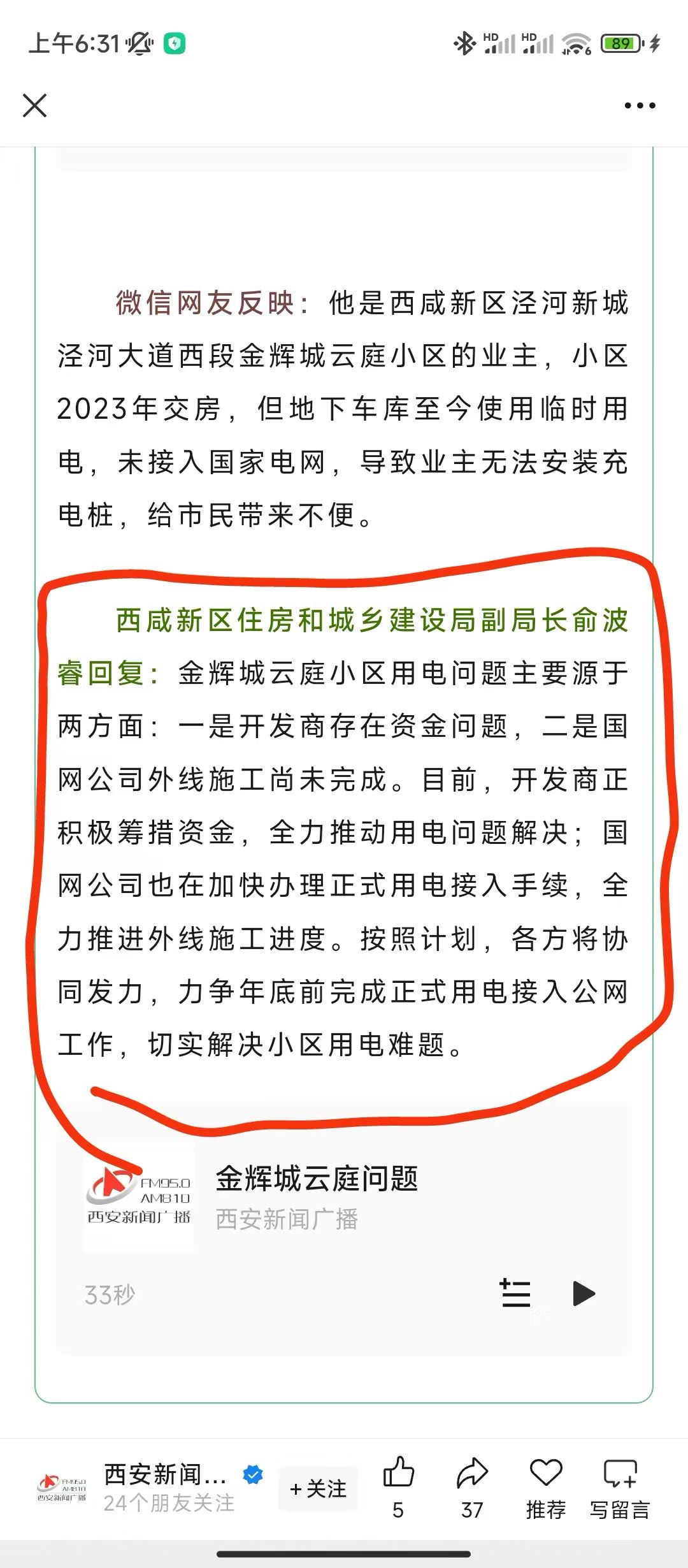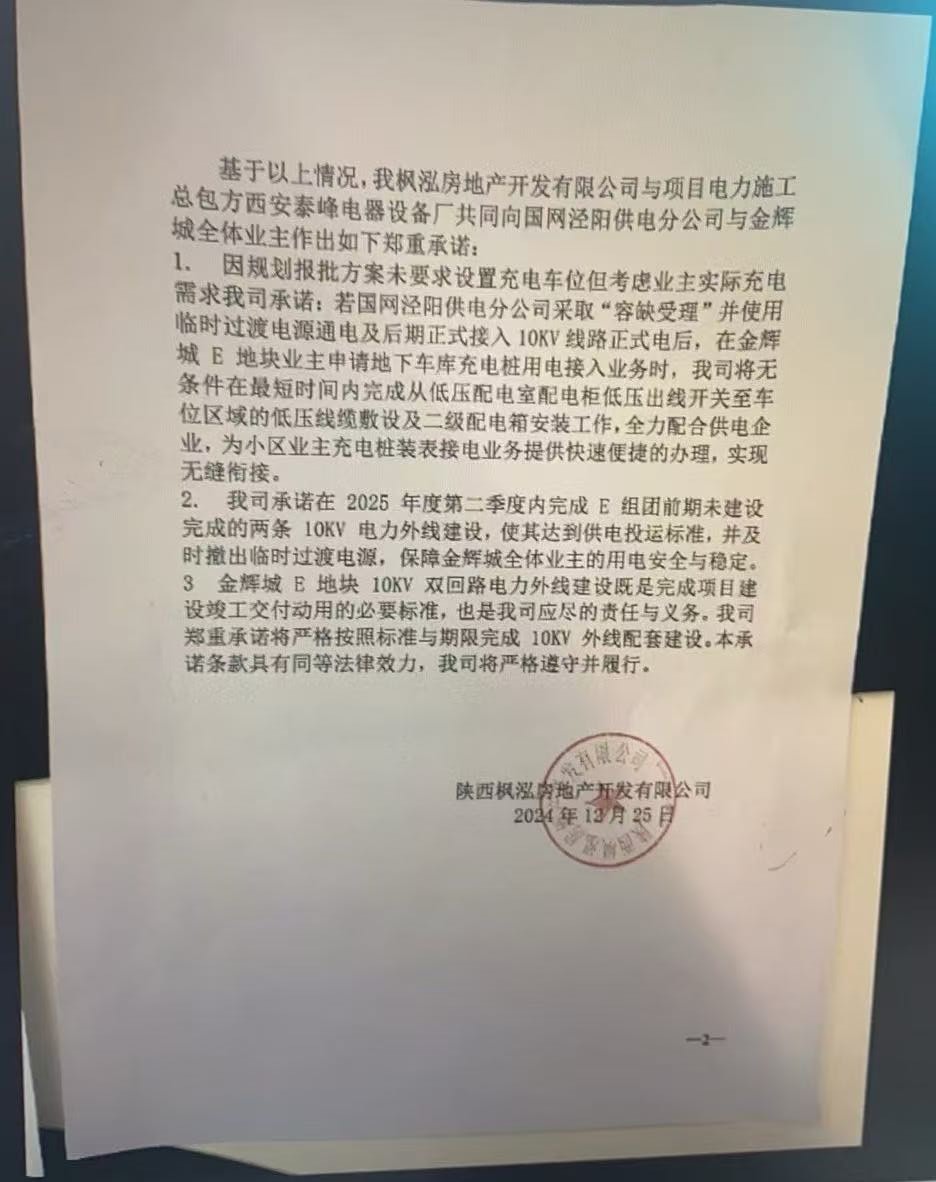 4. 开发商承诺违约:开发商于2024年12月25日承诺在2025年第二季度完成达标的外线电路工程,但至今未履行,构成违约,没人监督。