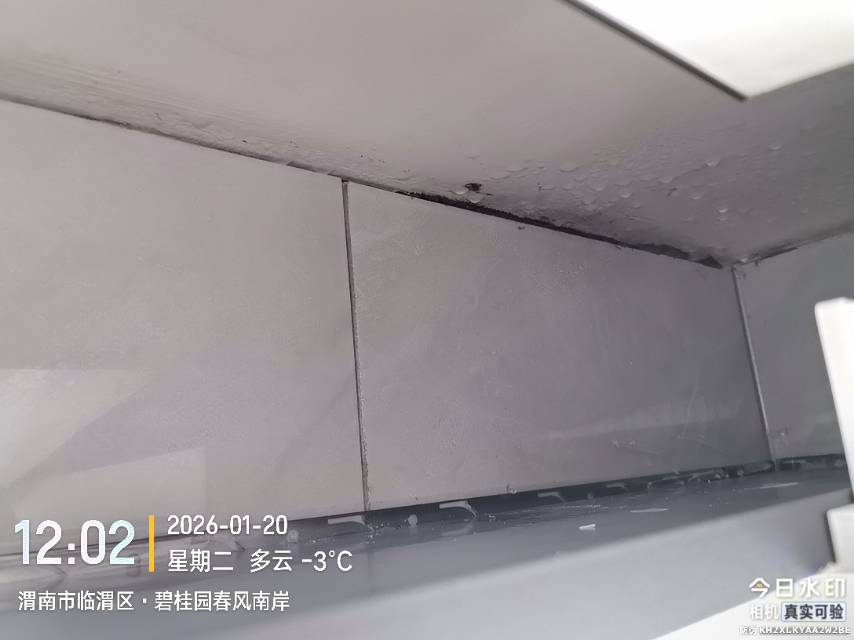碧桂园春风南岸4号楼顶楼防水工程不过关,2025年给西部网民生热线反映了楼顶漏水到家里阳台,开发商协同物业处理了阳台防水,处理完后到处都是裂缝,给物业反映,答复说下面有防水,不碍事,过了短短几个月,2026年雨雪天气又漏水了,物业说开发商跑路,无人认可维修费用,无人处理。