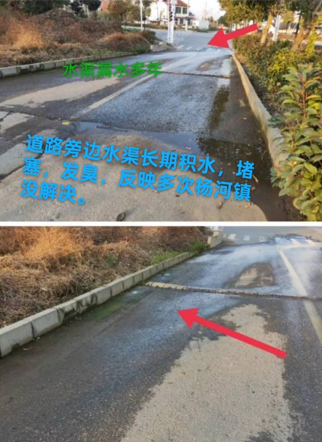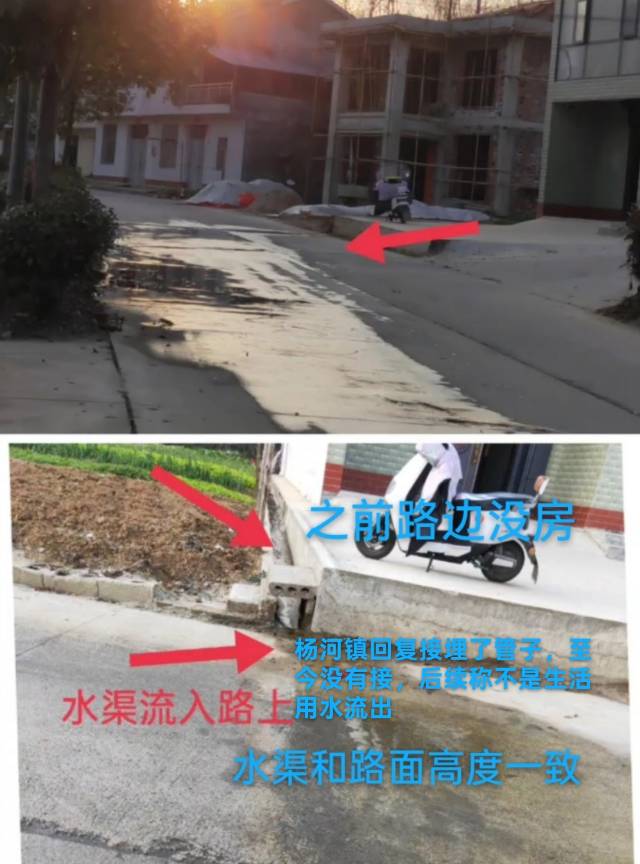2025年9月后,受秋霖天气影响,上杨路路边渠道内爆发山洪,上游冲击到此的渣土泥石杂物等又将该水渠淤堵,将水位抬高(该段灌溉渠一直高于上杨路路面约30厘米),同时部分渠段内侧再次出现有水从底部渗出的现象,杨河镇及时的应急处置。因此不存在快一年了,还是没有整改到位的问题。