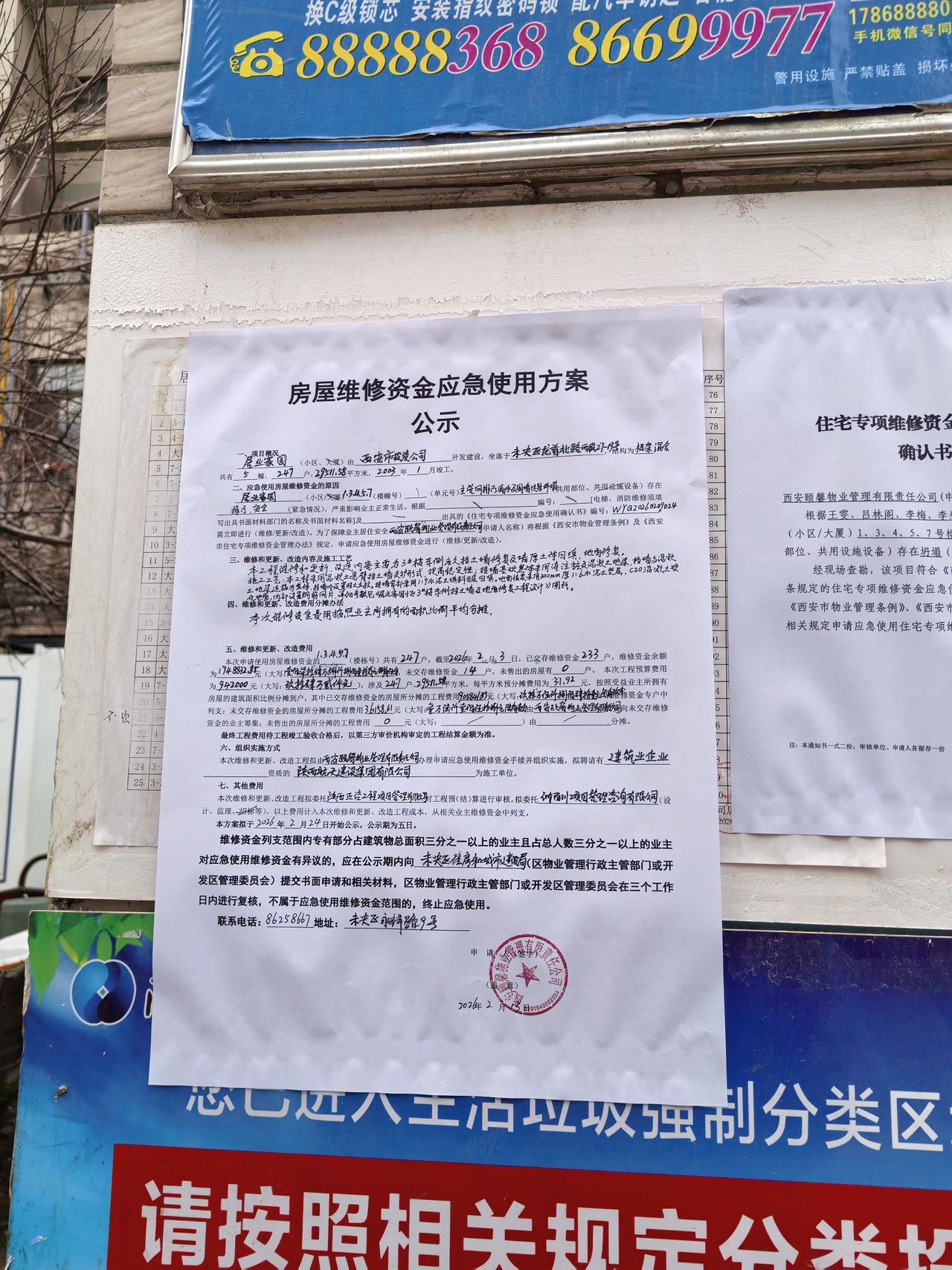 我是未央区居业家园小区业主,我小区去年年前公共自来水管道破裂引发地下渗水,导致地面坍塌及围墙倒塌,后经协调安排修复。近日,公示项目花费近百万元,实际工程施工土方面积及费用对比市场价差额巨大,住户一致认为维修金额过高,且物业无法列出具体费用清单。公示期只剩三天,希望有关部门维护群众合法权益,保障大修基金账户安全。